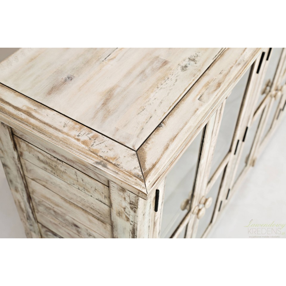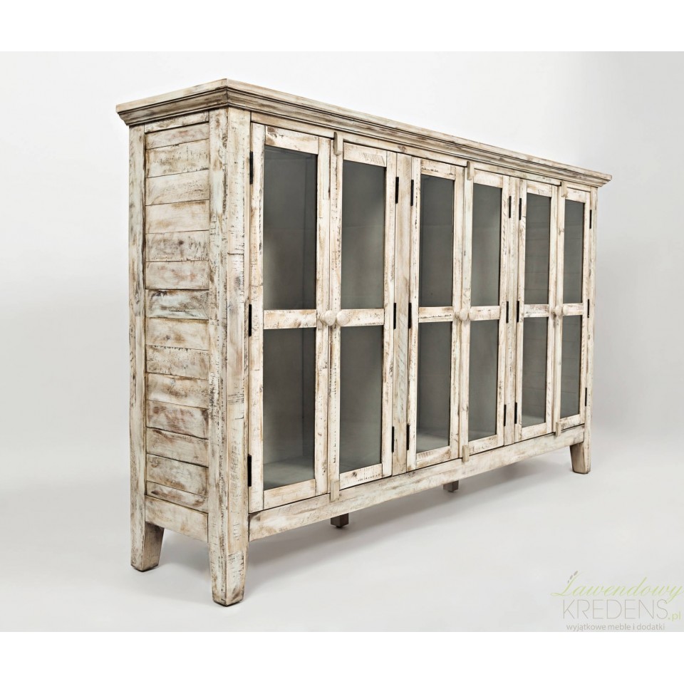 Komoda Rustykalna Przeszklona Avola Kremowa Livin Hill wykonana ze staranną dbałością o szczegóły ucieszy oko w Twoim mieszkaniu. Połączenie drewna akacjowego i szkła o nostalgicznym wyglądzie to prawdziwy unikat.