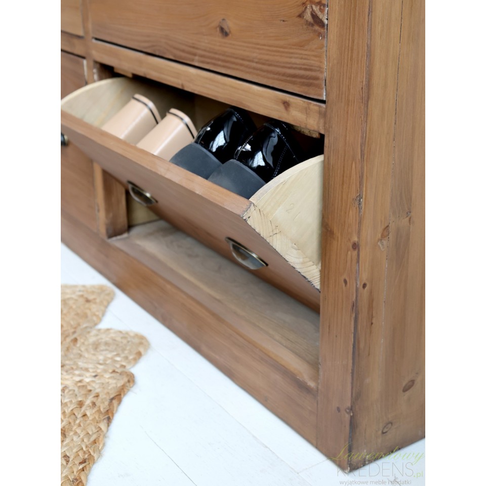Komoda na buty Chic Antique sprosta wymaganiom każdej kobiety, która uwielbia buty. Bardzo pojemna szafka o wymiarach 190 cm szerokość i 90 cm wysokość pomieści wiele cennych par butów. Solidne wykonanie i klasyczny wygląd zadowolą nawet najbardziej wymagających klientów.