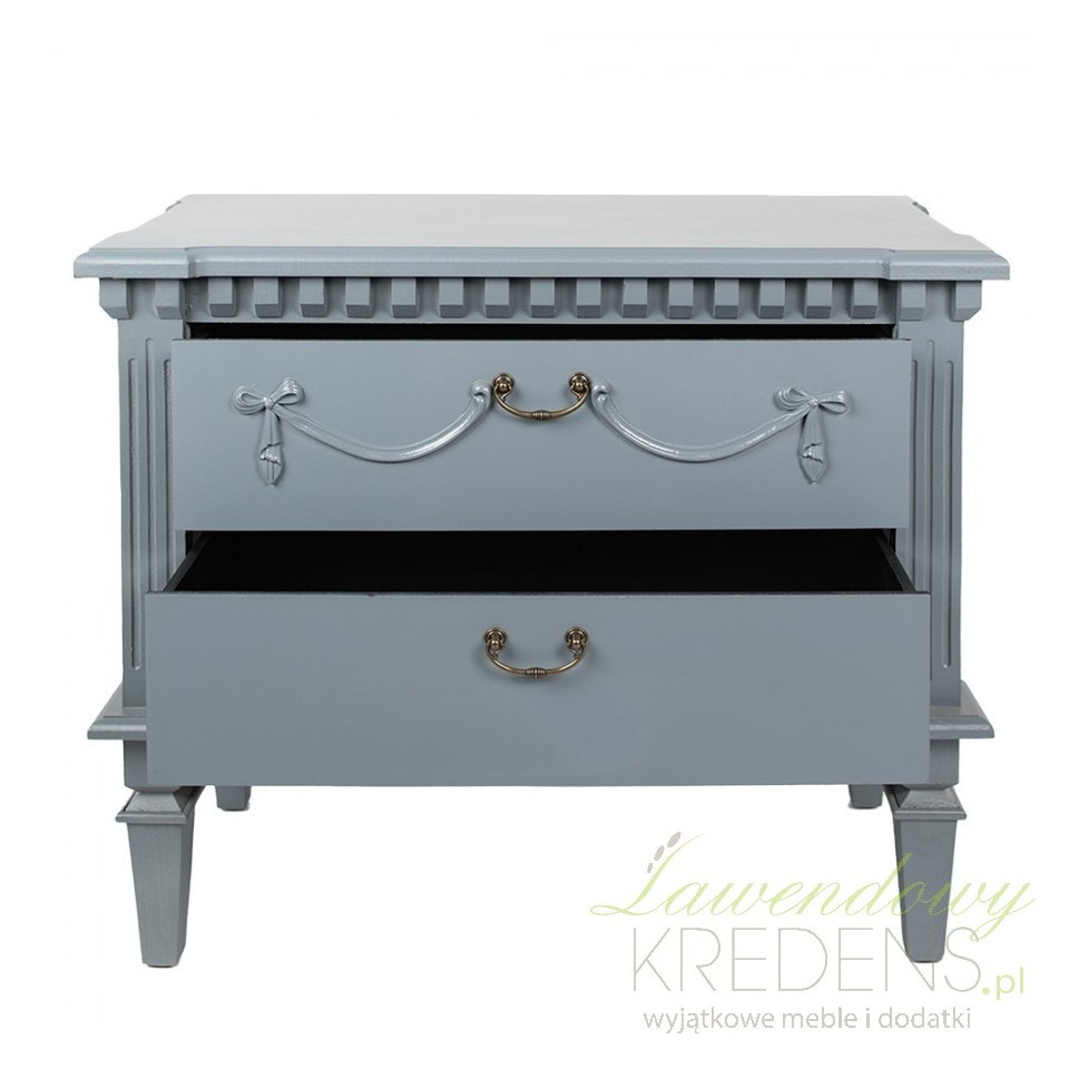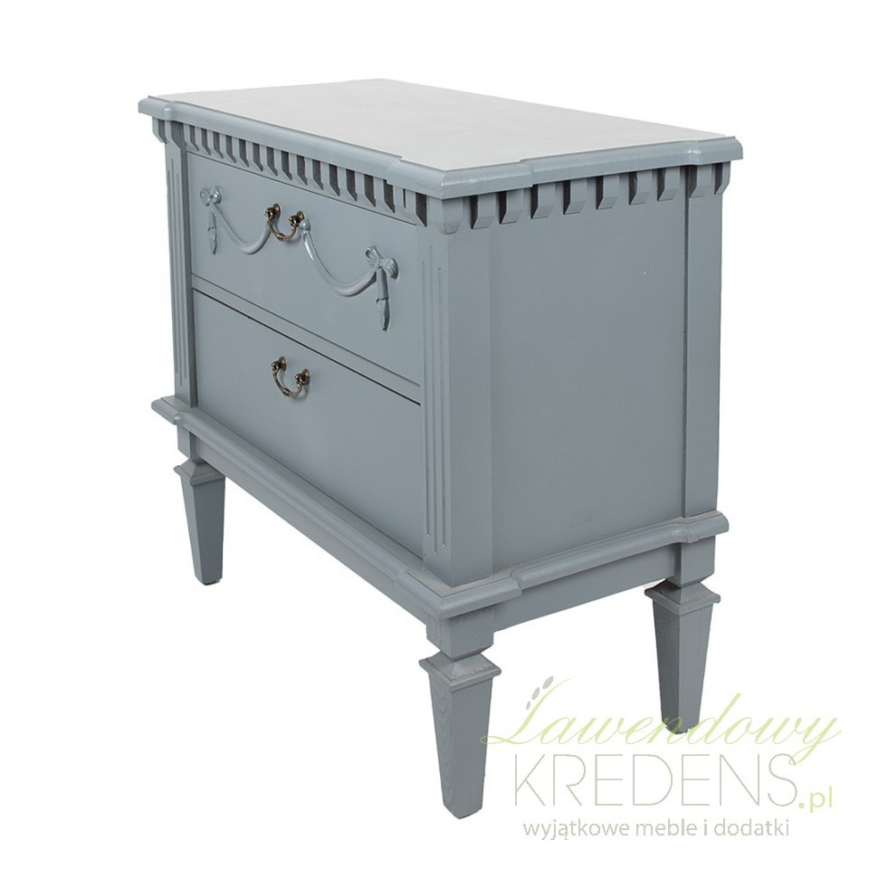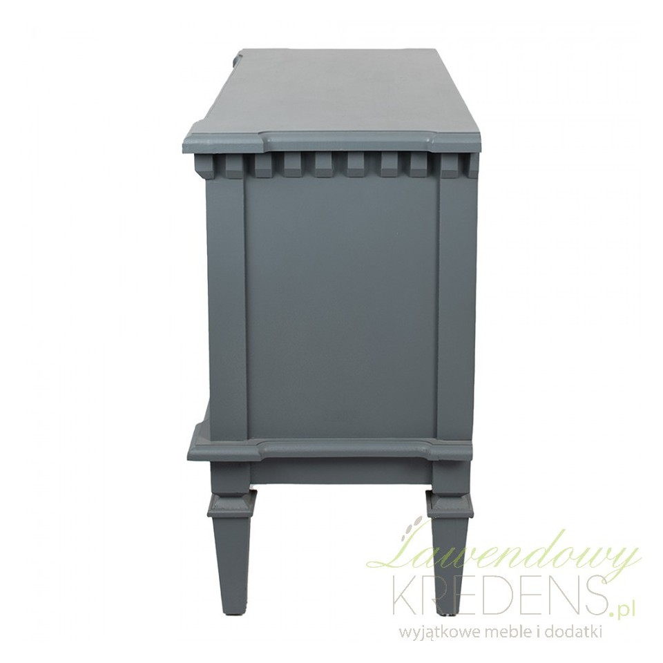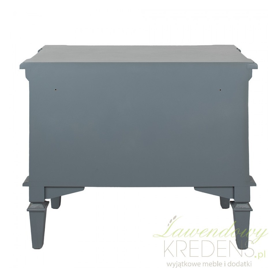 Wykonana z najwyższej jakości drewna, komoda w stylu francuskim niebieskoszara emanuje naturalnym pięknem i jest bardzo solidna. Jej niepowtarzalny kolor nadaje wnętrzu delikatności i subtelności, a jednocześnie wprowadza do niego nutę spokoju i harmonii, charakterystyczną dla stylu francuskiego.
