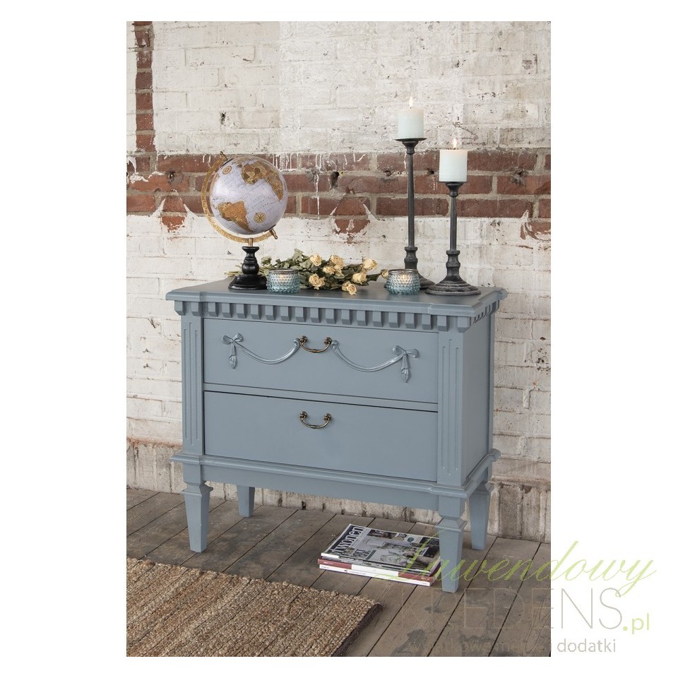 Ożyw swoje wnętrze wyjątkową komodą w stylu francuskim od holenderskiej marki Clayre & Eef. Jej niebieskoszary kolor, drewniana konstrukcja i delikatny dekor w kształcie wstążki z kokardką sprawią, że Twoje pomieszczenie nabierze wyjątkowego charakteru i klasy. Niech komody w stylu francuskim staną się sercem Twojego wnętrza, dodając mu uroku i zachwycającego wdzięku.