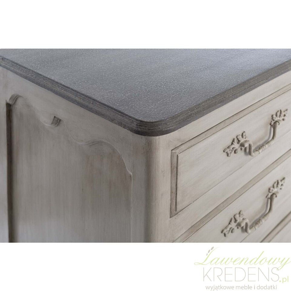 Kolor beżowy komody w połączeniu z szarym blatem kreuje harmonijną paletę barw, która doskonale komponuje się ze stylem prowansalskim. To połączenie subtelnych odcieni tworzy atmosferę przytulności i spokoju, którą możemy kojarzyć z malowniczymi francuskimi wioskami.