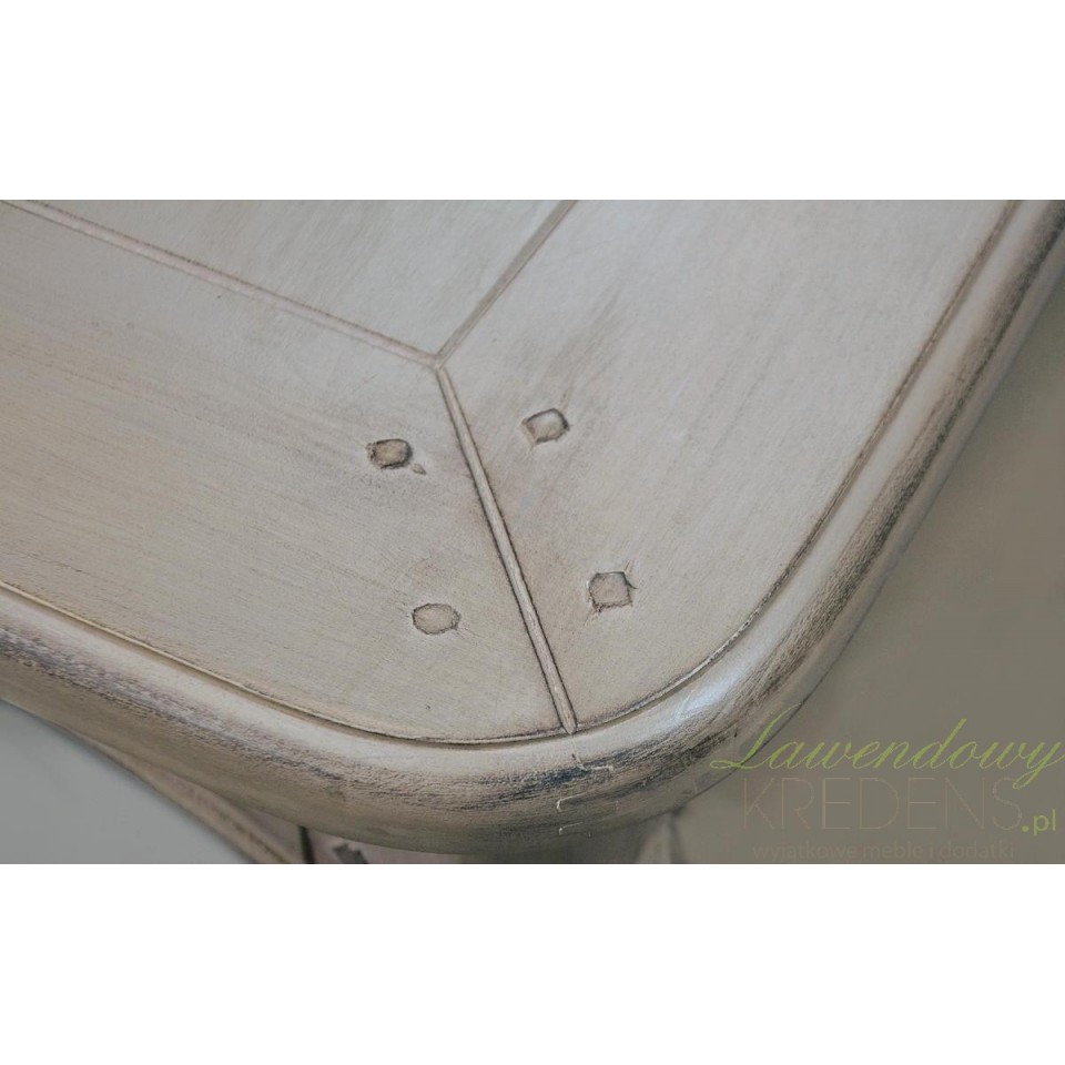 Komoda francuska, z licznymi szufladami różnej wielkości, to funkcjonalny i gustowny mebel do sypialni, salonu czy do dużego przedpokoju. Stabilna konstrukcja, całość wykonana z drewna brzozowego, efektownie wykończona (metalowe kute uchwyty, widoczne drewniane kołki wskazujące na tradycyjne metody stolarskie). Ręcznie malowana!