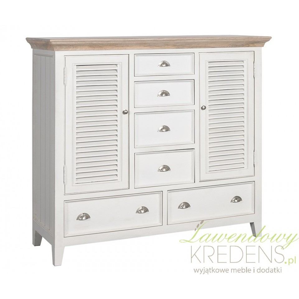 Posiadająca dwie zamykane półki oraz sześć szuflad o różnych pojemnościach komoda Belldeco z kolekcji Bristol White. Ciekawe rozwiązanie konfiguracyjne wzajemnego położenia powierzchni użytkowych, sprawia, że komoda Belldeco jest wielofunkcyjna i od Ciebie zależy jakie będzie pełniła funkcje w Twoim wnętrzu. Klasyczna biel i naturalne drewno blatu nadają całość charakteru i wyjątkowego uroku. Zobacz także pozostałe meble Belldeco Bristol White i skompletuj całe wyposażenie wnętrza!