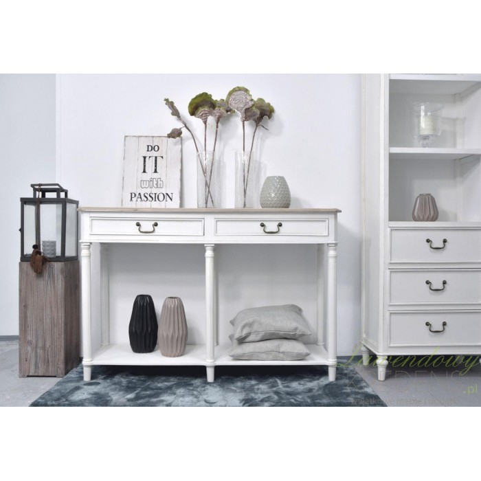 Podwójna konsola prowansalska godnie reprezentująca białe meble, dzięki którym Twoje wnętrze stanie się jaśniejsze i przestronniejsze!