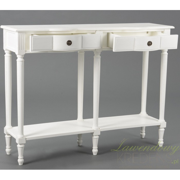 Marzy Ci się gustowna, biała konsola prowansalska z półką w dolnej części? Mamy coś właśnie dla Ciebie!