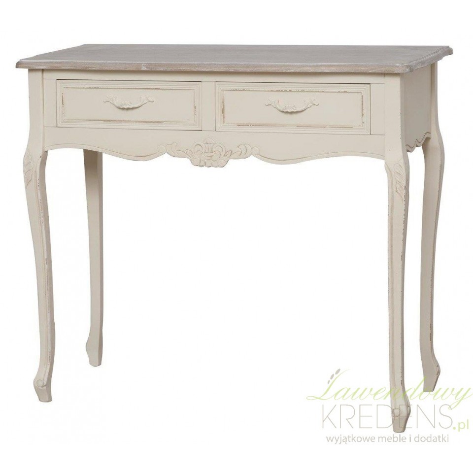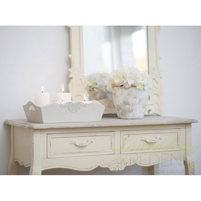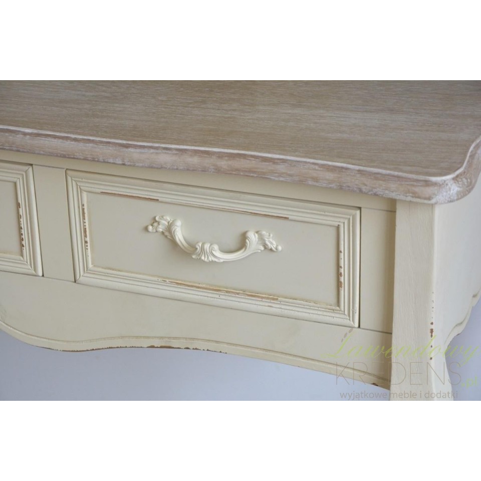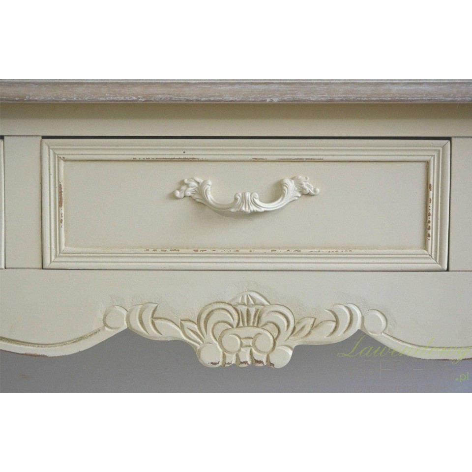 Meble prowansalskie to niesamowita jakość i świetny wygląd. Konsola prowansalska z kolekcji Savona będzie idealnie wyglądać w sypialni lub pokoju, dodając mu klimatu i ciepłej atmosfery. Konsola w stylu prowansalskim posiada dwie szufladki i długi blat, który może posłużyć jako miejsce do pisania czy położenia różnych rzeczy. Zapraszamy do zakupu!