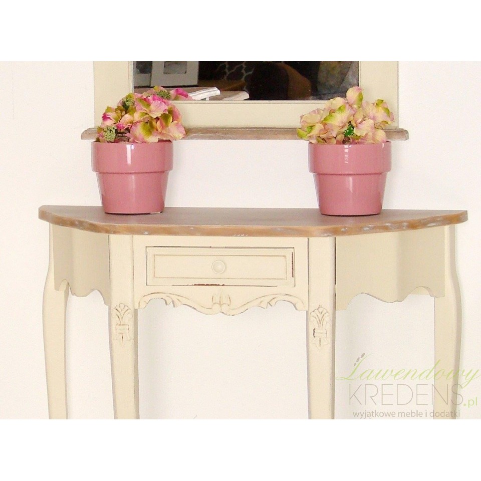 Zapierająca dech w piersi konsola w stylu prowansalskim o kremowej powierzchni podstawy i jasno-drewnianym blatem!