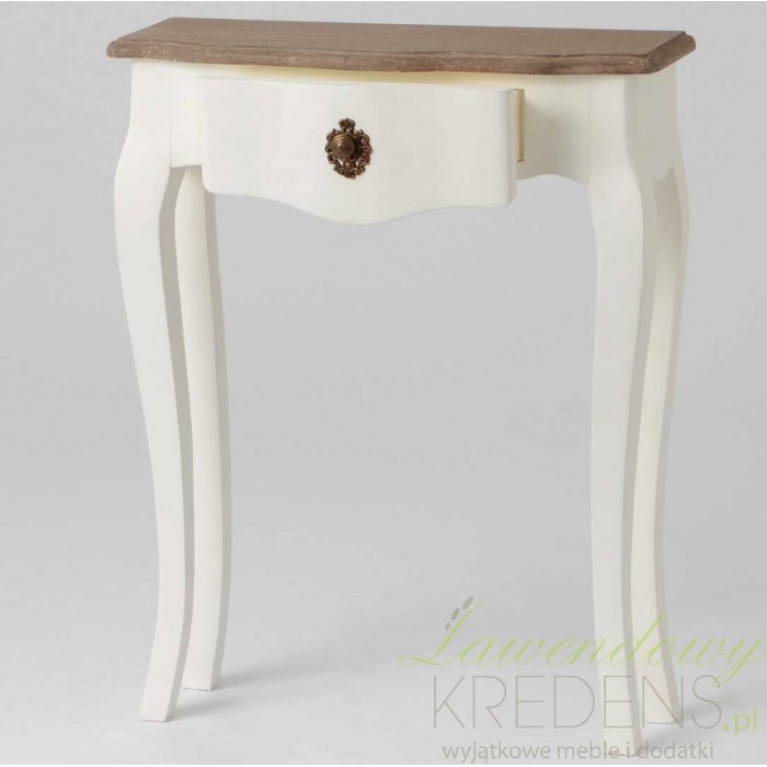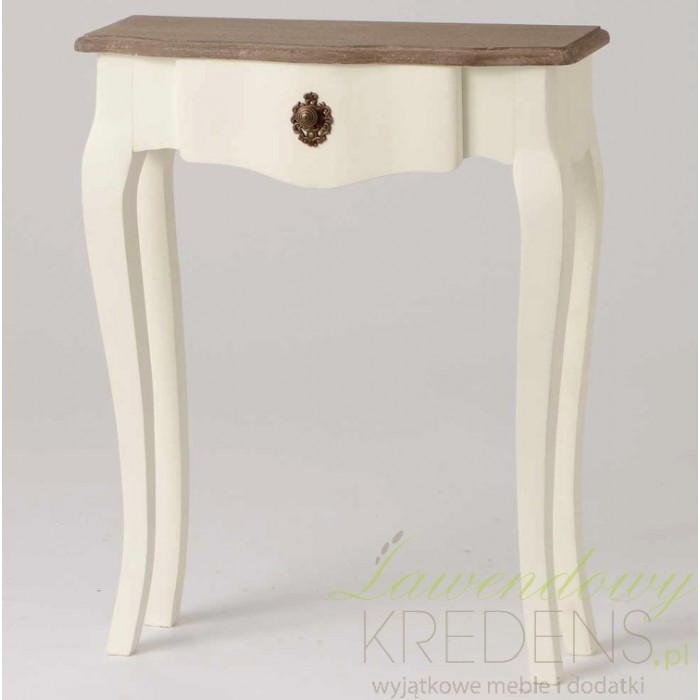 Prowansalskie meble to pełne elegancji i pięknych zdobień meble francuskiego pochodzenia. Konsola w stylu prowansalskim ma kolor kremowy a blat jest koloru brązowego. Świetnie komponuje się z oryginalnym i dekoracyjnym uchwytem na szufladzie. Konsola prowansalska z kolekcji Lamani to niezbyt głęboki mebel, który wszędzie się dopasuje.