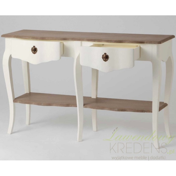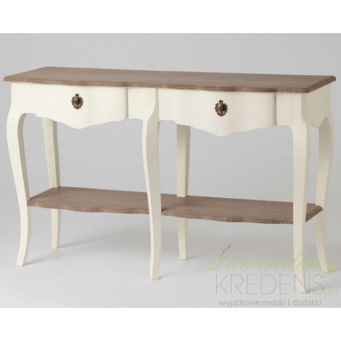 Przepiękna konsola prowansalska z kolekcji Lamani z szeroką półką i dwoma szufladkami!