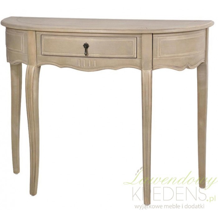 Półokragła konsola, z giętymi nogami i subtelnymi rzeźbieniami będzie ozdobą wielu pomieszczeń:przedpokoju, salonu czy gabinetu. Piękny, ręcznie malowany mebel z ozdobnym metalowym uchwytem przy funkcjonalnej szufladzie. Konsola Venezia może stać się ciekawym elementem wielu aranżacji.