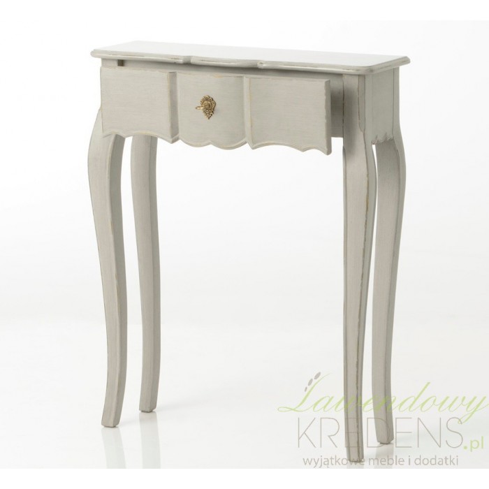 Zaprojektowana przez wybitnych projektantów konsola prowansalska, której jasnoszara powierzchnia wspaniale współgra z metalową gałką w kolorze starego złota.