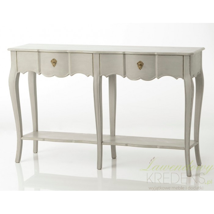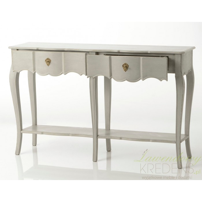 Konsola w stylu prowansalskim z serii Baletti. Konsola ma długą półkę u dołu i dwie praktyczne szufladki.