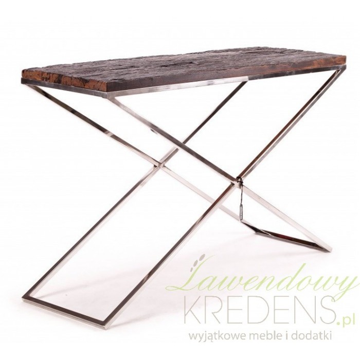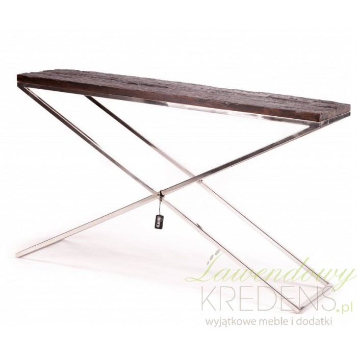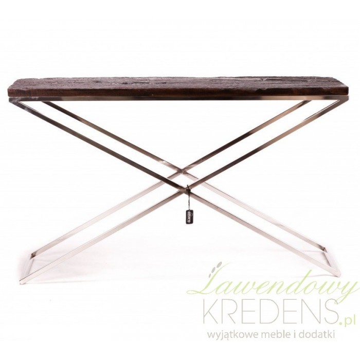 Konsola od renomowanej firmy aluro to mebel składający się z brązowego blatu wykonanego z drewna z odzysku oraz ze skrzyżowanych ze sobą srebrnych nóg wykonanych ze stali nierdzewnej. Konsola aluro jest długa, dzięki czemu pomieści wiele przedmiotów oraz drobiazgów i będzie świetnie pasować w salonie, przedpokoju a nawet jako toaletka w sypialni. Meble aluro to kwitensencja dobrego designu!