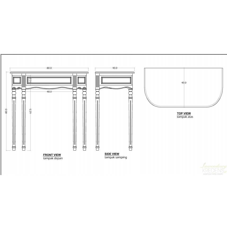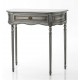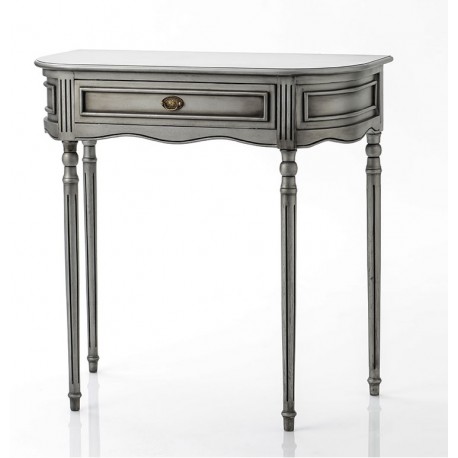 Konsola w stylu francuskim z prostymi nogami wyróżnia się niejednolitą barwą - odcieniem ciemnych i jasnych szarości. Frontowa część mebla zdobiona jest frezowaniami. Warto zwrócić uwagę również na kształt mebla, który ma zaokrąglone boki. Kupując meble w stylu francuskim możesz mieć absolutną pewność, że podejmujesz najlepszą decyzję aranżacyjną.