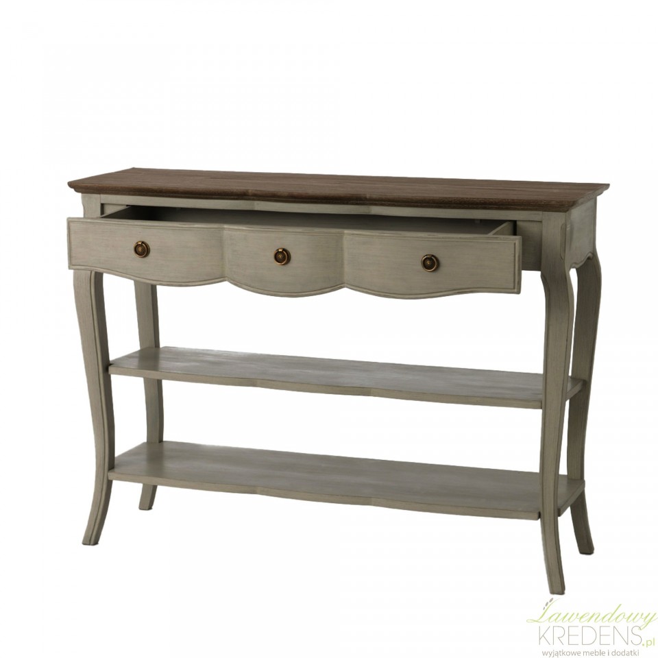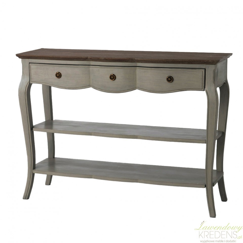 Beżowa konsola w stylu prowansalskim to mebel stylizowany delikatnymi przecierkami, widocznymi w szczególności na szufladach i nogach. Charakteryzuje się niezwykłą klasą i przemyślanym wzornictwem. Niezwykle ważną rolę, poza szufladami odgrywa blat w kolorze naturalnego brązu. Konsole w stylu prowansalskim świetnie pasują do wnętrz, w których elegancja łączy się z przytulnością i praktycznością.
