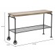 Dwupoziomowa konsola w stylu industrialnym to mebel ustawiony na dwóch kółkach metalowych, dzięki czemu doskonale sprawdzi się w posiadaniu osób, które lubią często zmieniać wystrój swoich wnętrz.