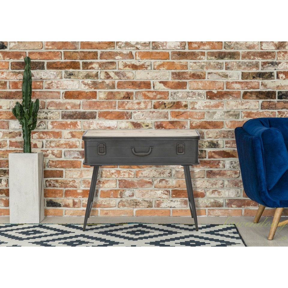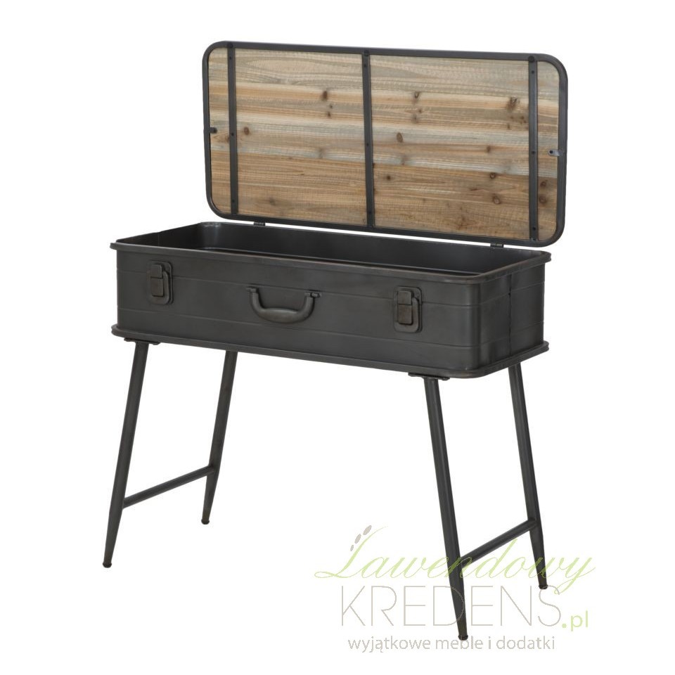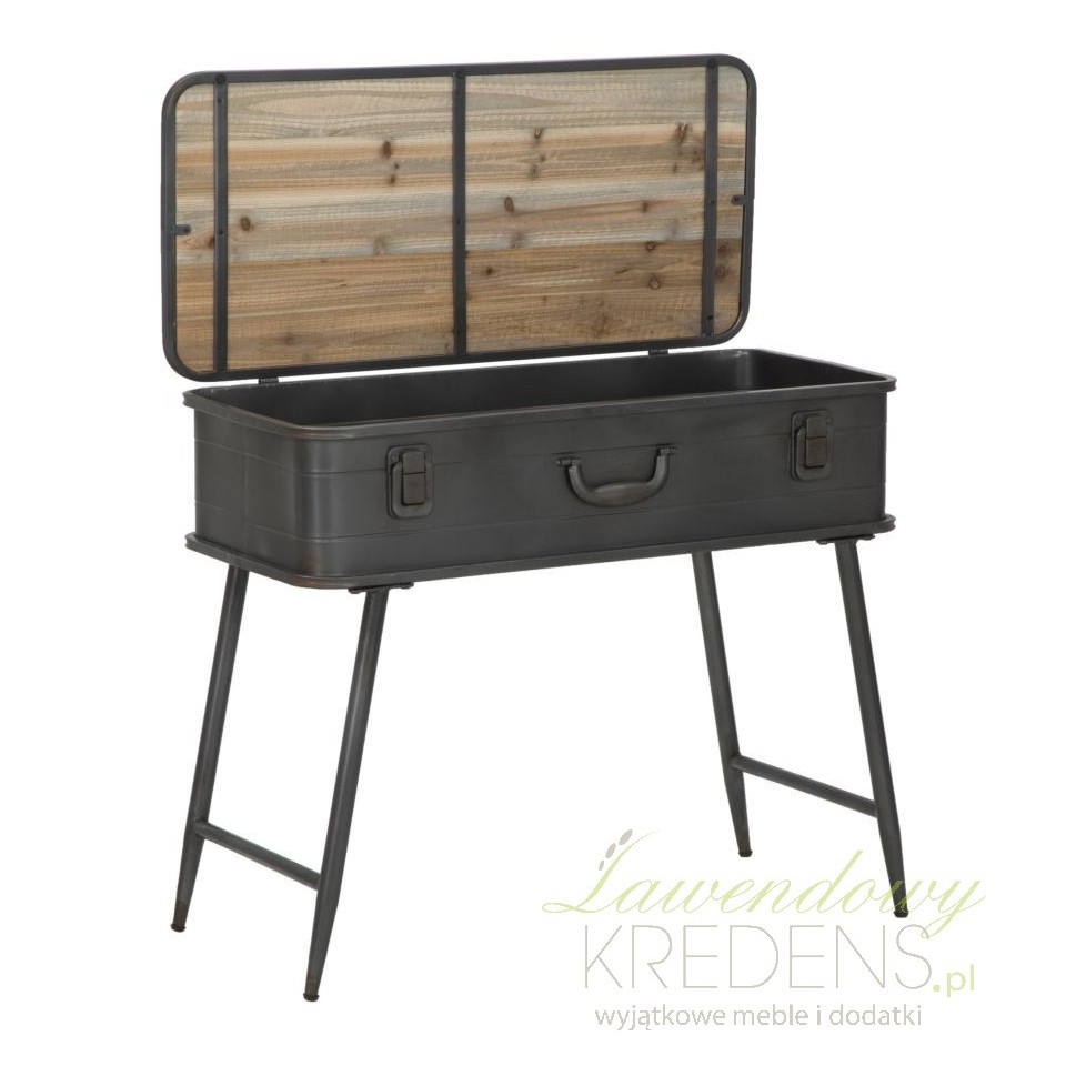Konsola loftowa z drewna i metalu, zainspirowana funkcjonalnością walizki podróżnej to mebel zasługujący na owacje na stojąco! Jej praktyczności nie ma sobie równych!