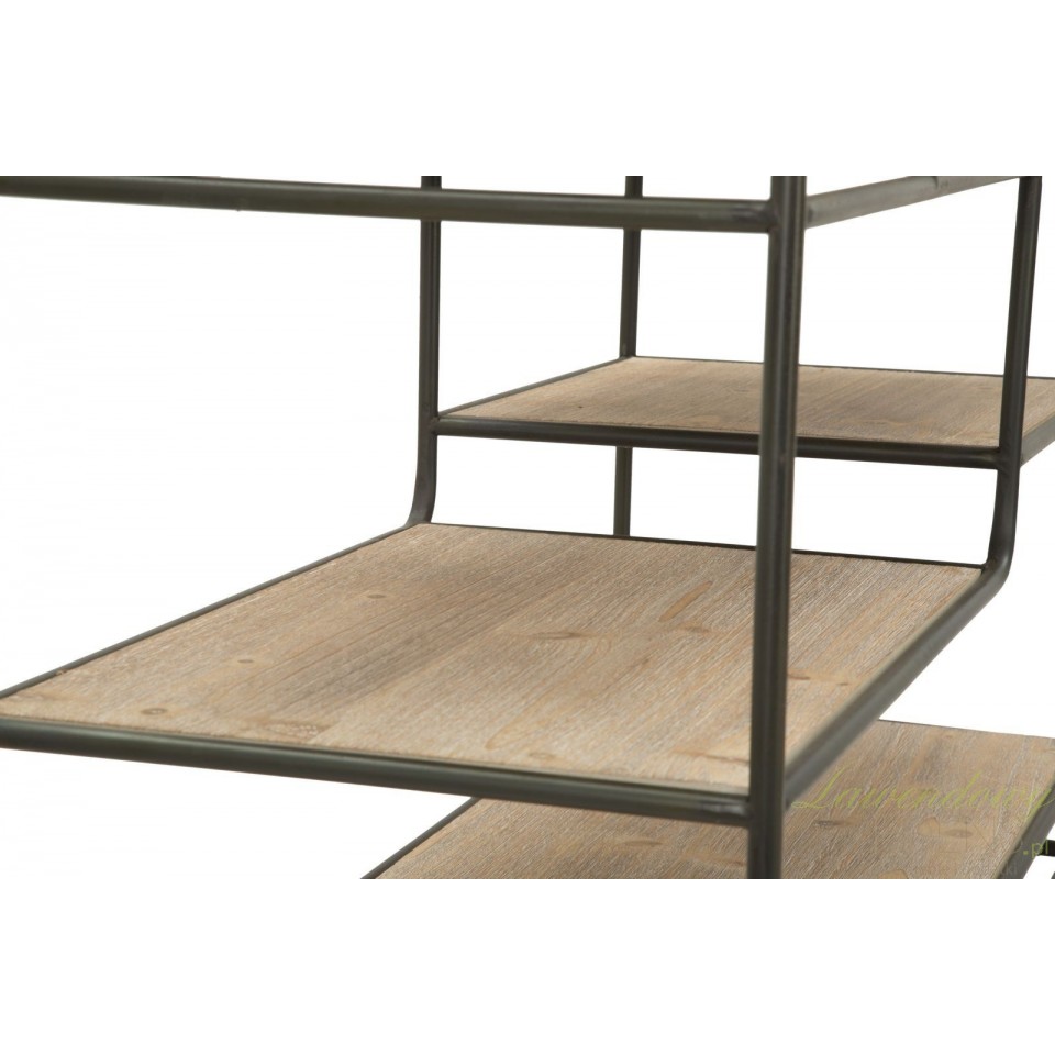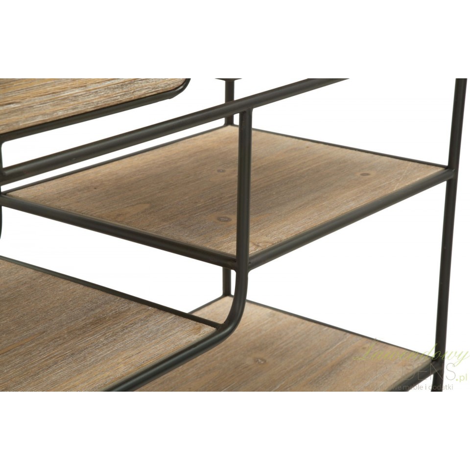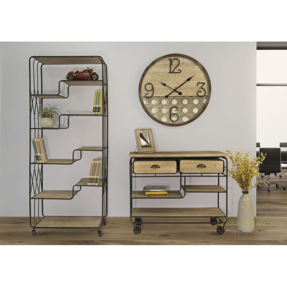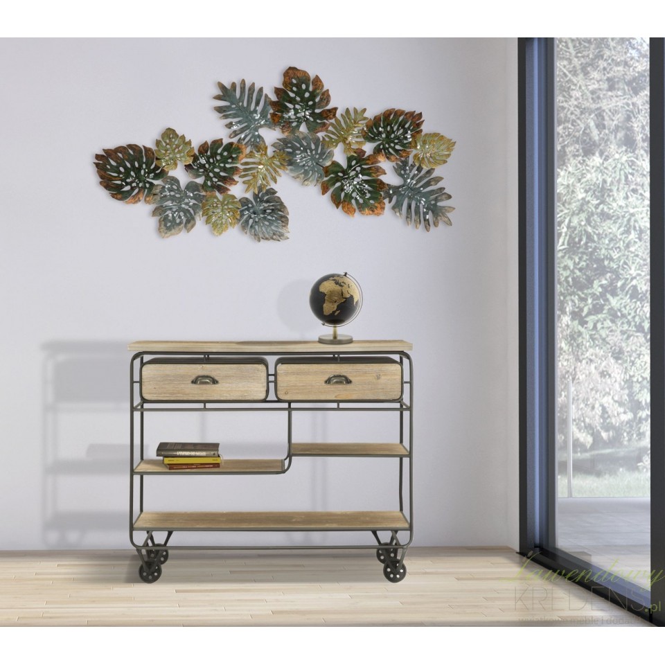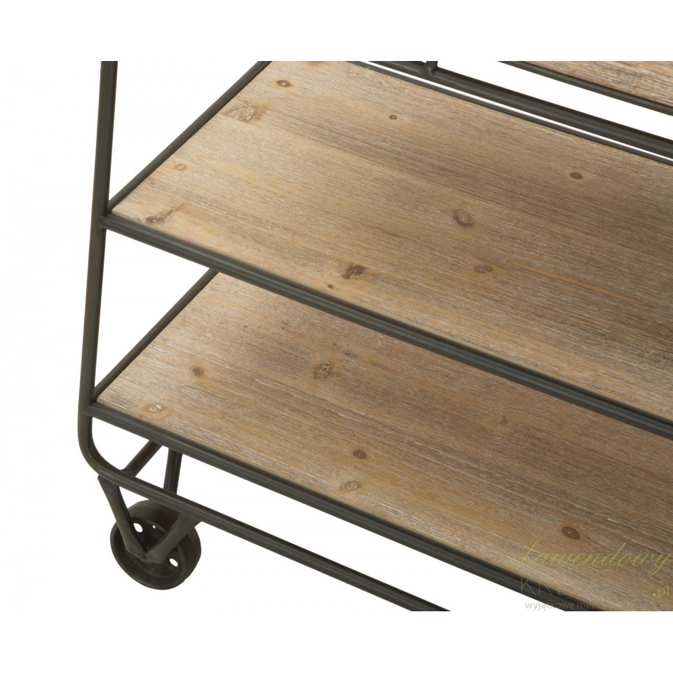 Konsola loftowa industry to mebel o wyjątkowej formie, posiadający cztery kółka metalowe, trzy półki różniące się szerokością oraz dwie szuflady. Użyteczność to charakterystyczna cecha tego pomocniczego mebla, co zachęca do wykorzystania go w kuchniach, jadalniach, a nawet w lokalach usługowych takich jak bary i restauracje. Niezależnie od tego gdzie zostanie wykorzystana konsola loftowa możesz liczyć na to, że spełni swoją funkcję oferując Ci mnóstwo funkcjonalności i ponadczasowy design.
