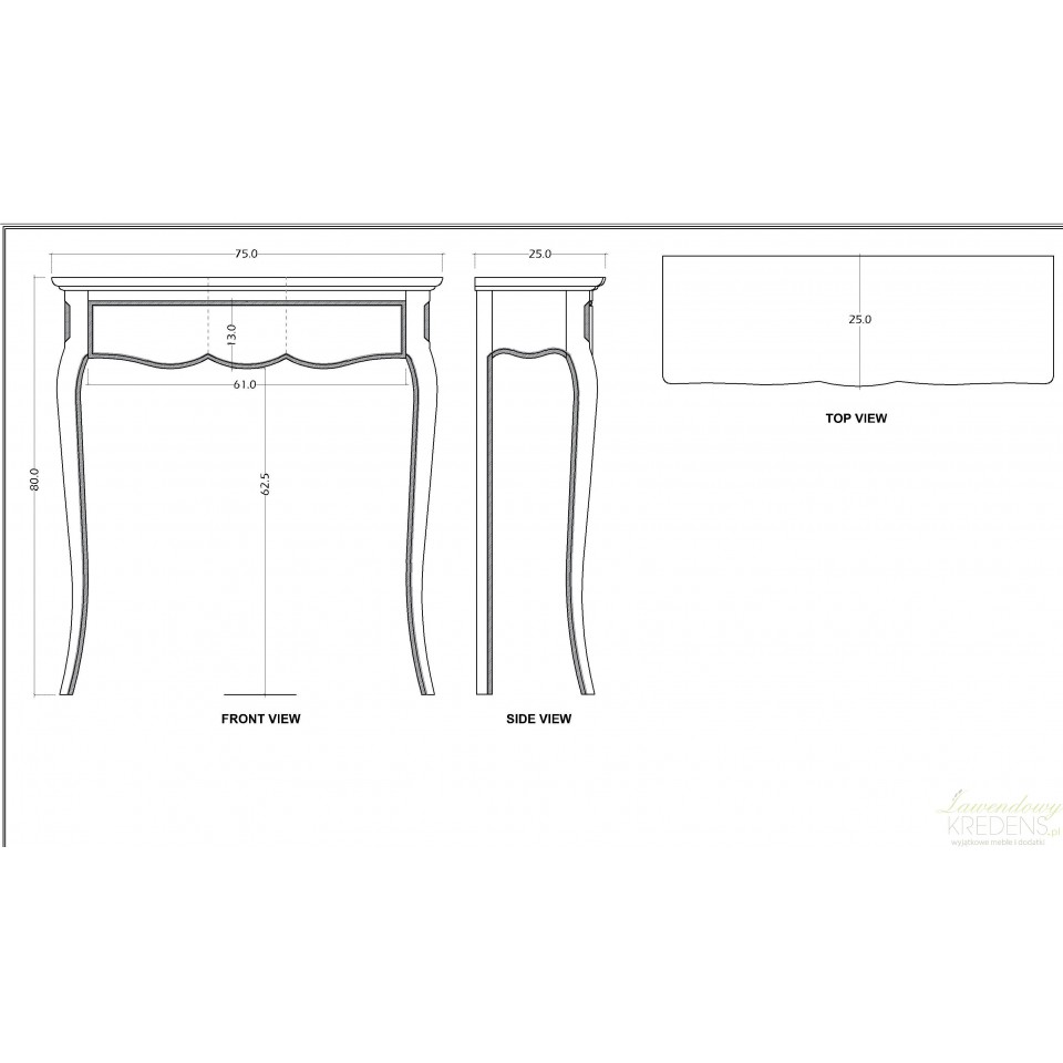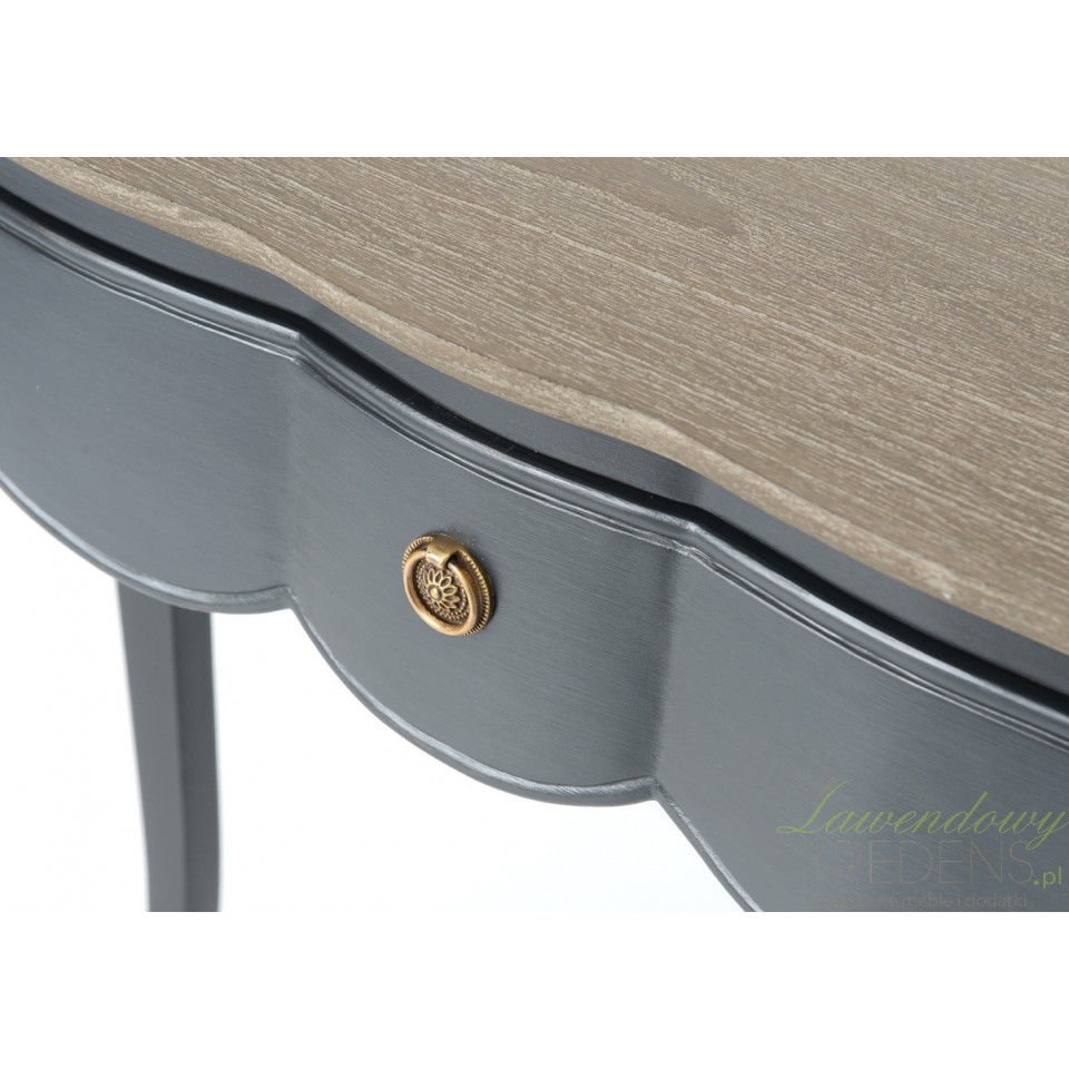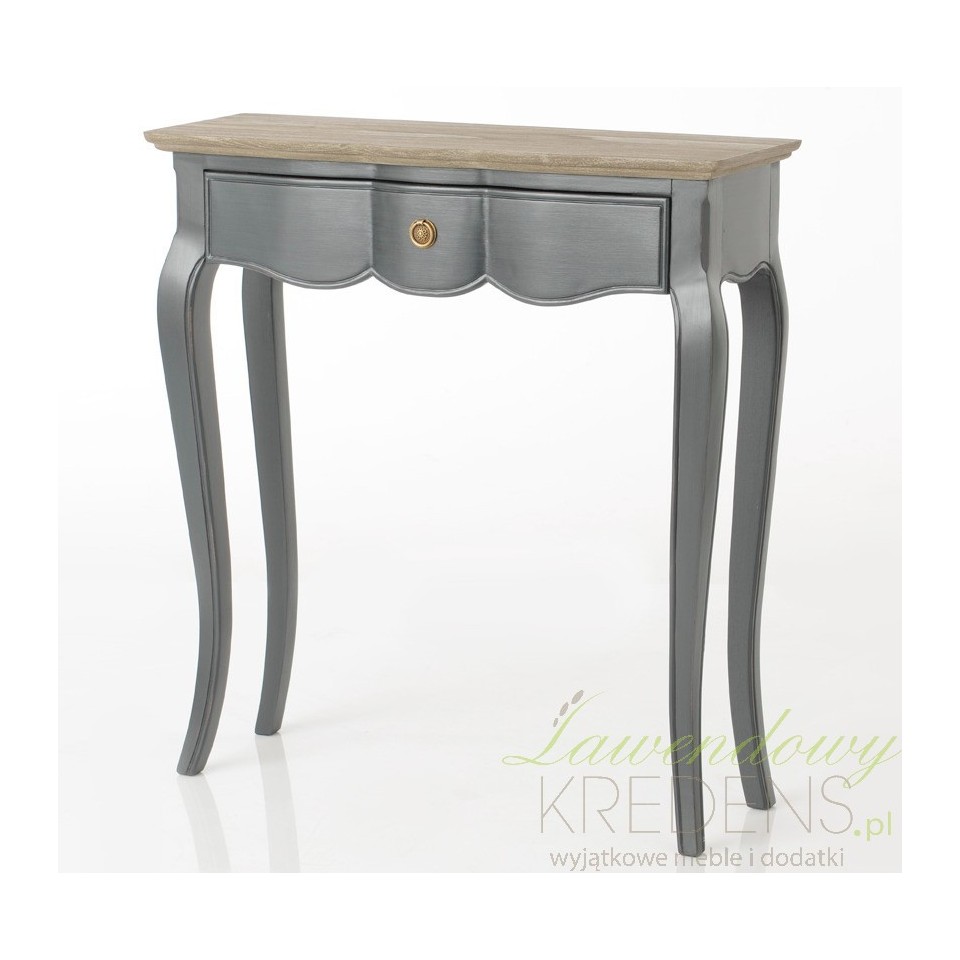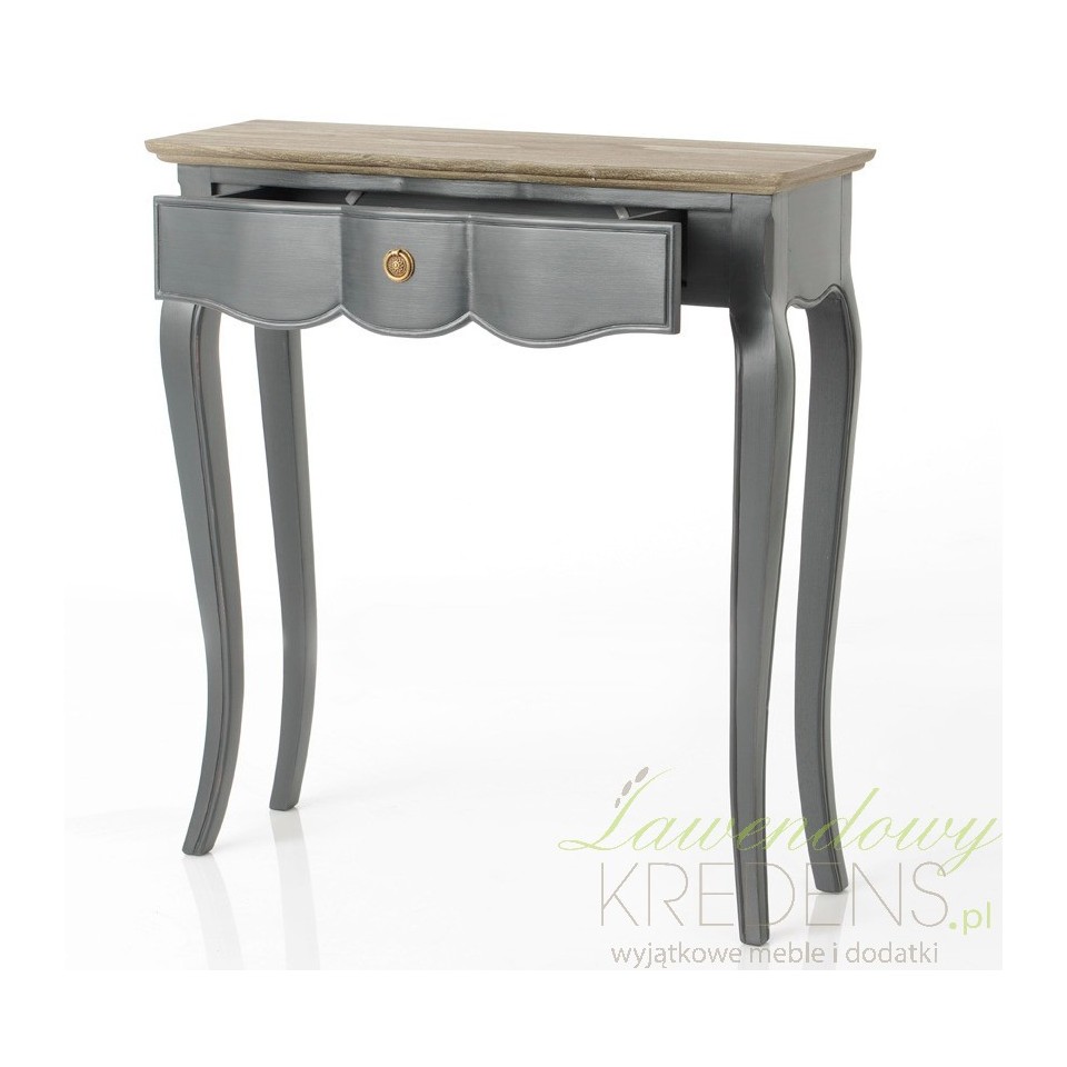 Drewniany blat o delikatnym rysunku słojów stanowi idealne tło dla dekoracji: świec, wazonów, porcelany czy książek. Konsola sprawdzi się również jako elegancka toaletka – wystarczy dodać lustro w ramie, aby stworzyć klimatyczny kącik w stylu francuskiej prowincji.