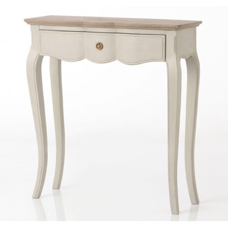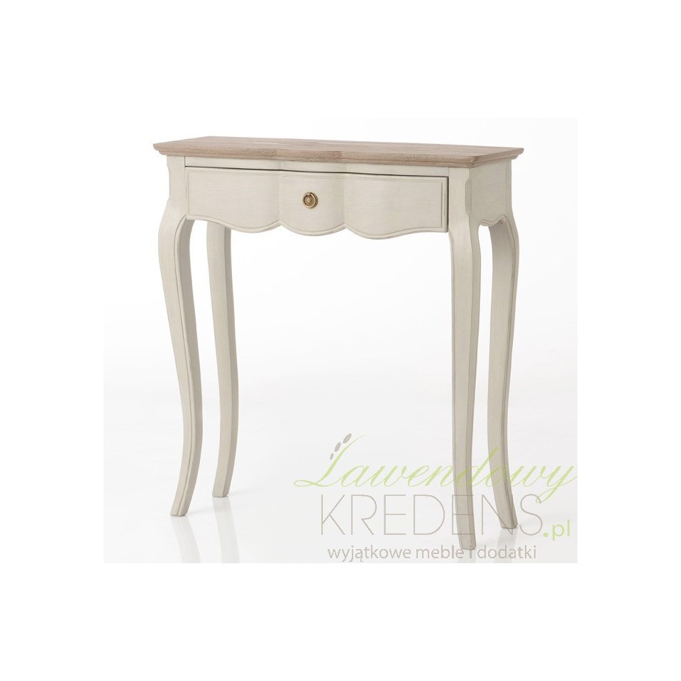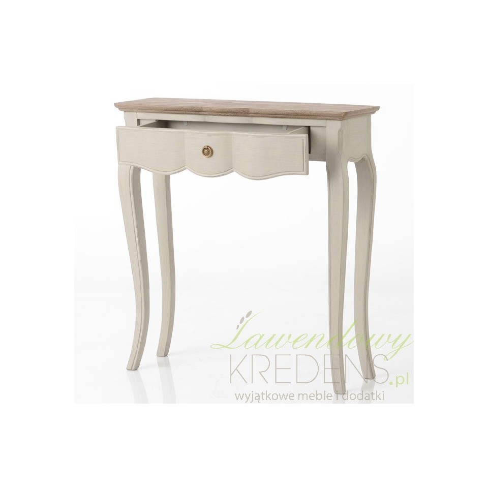 Konsola Perri B w stylu prowansalskim to mebel, który zachwyca elegancją i lekkością. Beżowoszara kolorystyka, delikatnie gięte nogi i drewniany blat tworzą harmonijną całość w duchu francuskiego designu. Konsola idealna do przedpokoju, sypialni lub salonu wprowadza do wnętrza romantyczny urok, łącząc funkcjonalność z subtelnym pięknem.