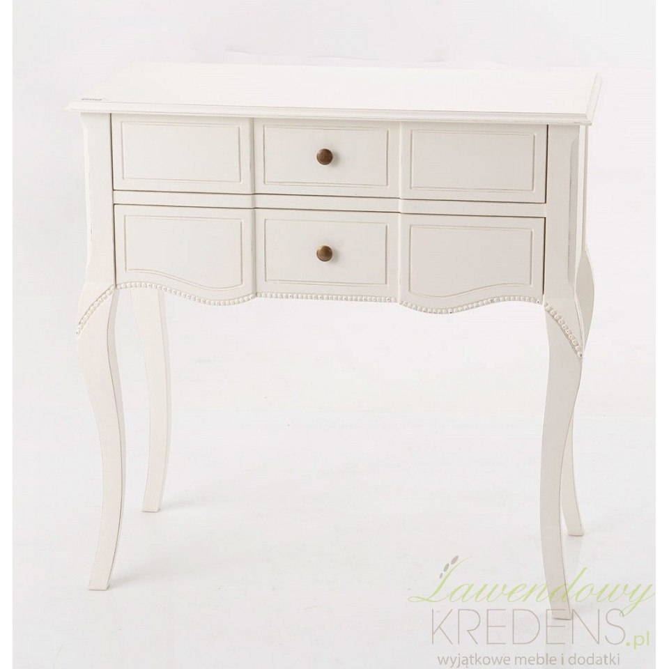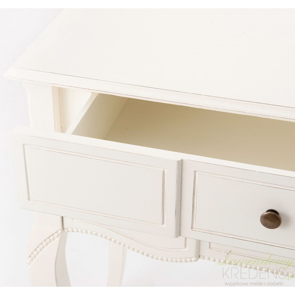 Jeśli chcesz wprowadzić atmosferę słonecznej i nostalgicznej Prowansji do swojego salonu, ta klasyczna konsola w stylu prowansalskim jest najlepszym wyborem! Wielofunkcyjna i stabilna konstrukcja ma na celu zaspokoić różnorodne potrzeby (związane zarówno z przechowywaniem jak i eksponowaniem). Wykonana w kolorze kremowej bieli konsola prowansalska jest wyposażona w dwie szuflady z metalowymi, okrągłymi uchwytami. Meble w stylu prowansalskim doskonale nadają się do salonów.