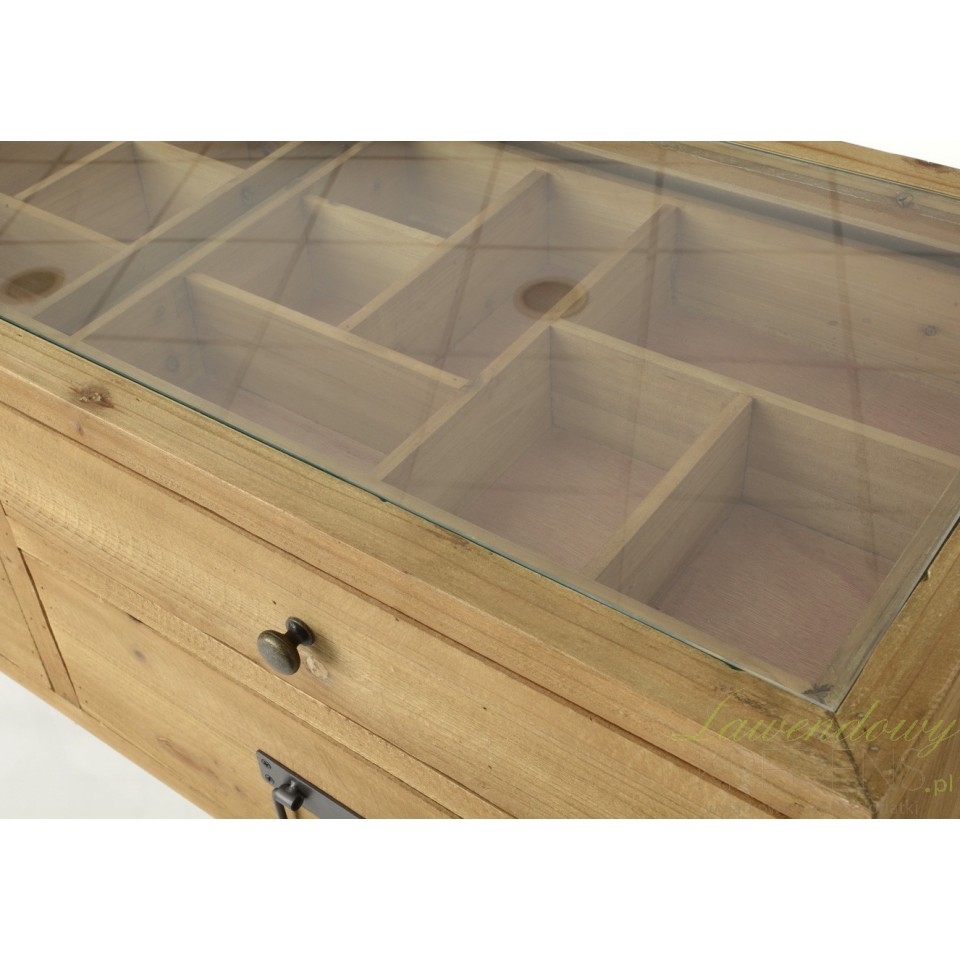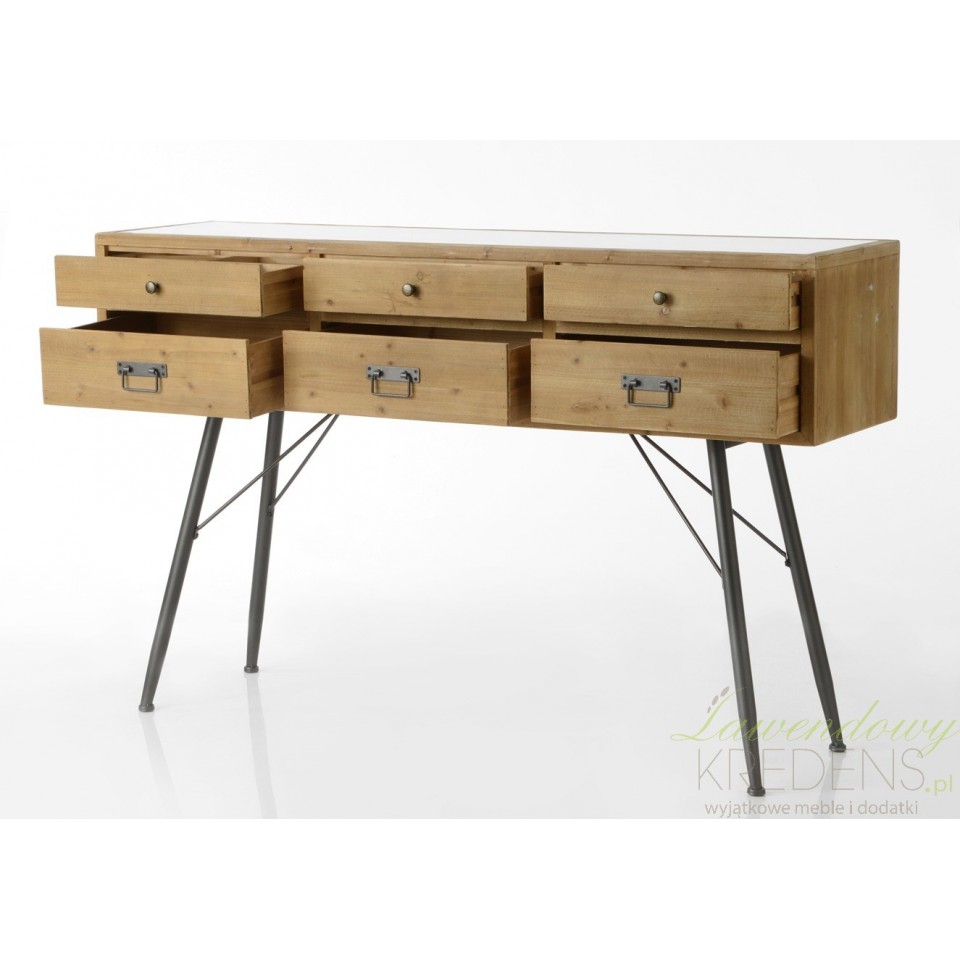 Dodaj odrobinę kunsztu i funkcjonalności do swojego salonu dzięki wspaniałej konsoli z przeszklonym blatem. Konsola loft to pomysł na perfekcyjną organizację każdego pomieszczenia, dzięki sześciu szufladkom z przegródkami, których zawartość można podejrzeć, bez konieczności ich wysuwania. Ta konsola w stylu loftowym, którą wykonano z drewna, szkła i metalu to przyciągający wzrok element, który pasuje zarówno do klasycznych, jak i nowoczesnych pomieszczeń. Meble loftowe są nie tylko piękne ale i praktyczne!