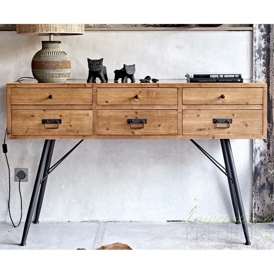 Konsola w stylu loftowym z szufladami, które doskonale nadają się do przechowywania biżuterii lub akcesoriów krawieckich to jeden z najlepszych projektów francuskiego producenta.
