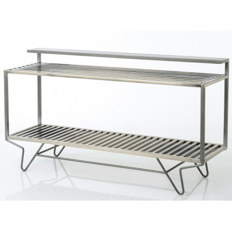 Metalowa konsola w szarym kolorze budową przypomina bardzo prosty mebel. I w tym tkwi jej sekret - minimalistyczny kształt sprawia, że pasuje doskonale do każdego wnętrza. Konsola loft wyposażona jest w półkę i blat, które skonstruowano z metalowych prętów. Metalowe konsole to idealne miejsce na książki lub donice z kwiatami w nowoczesnym salonie.