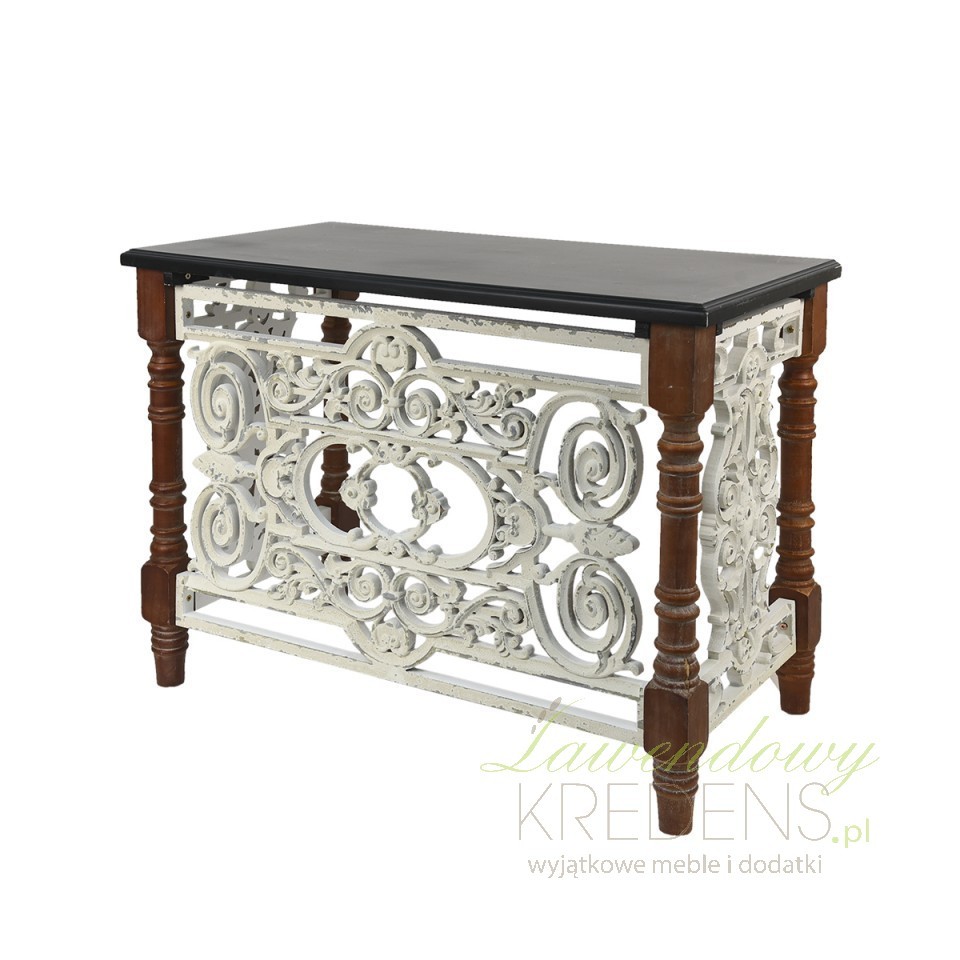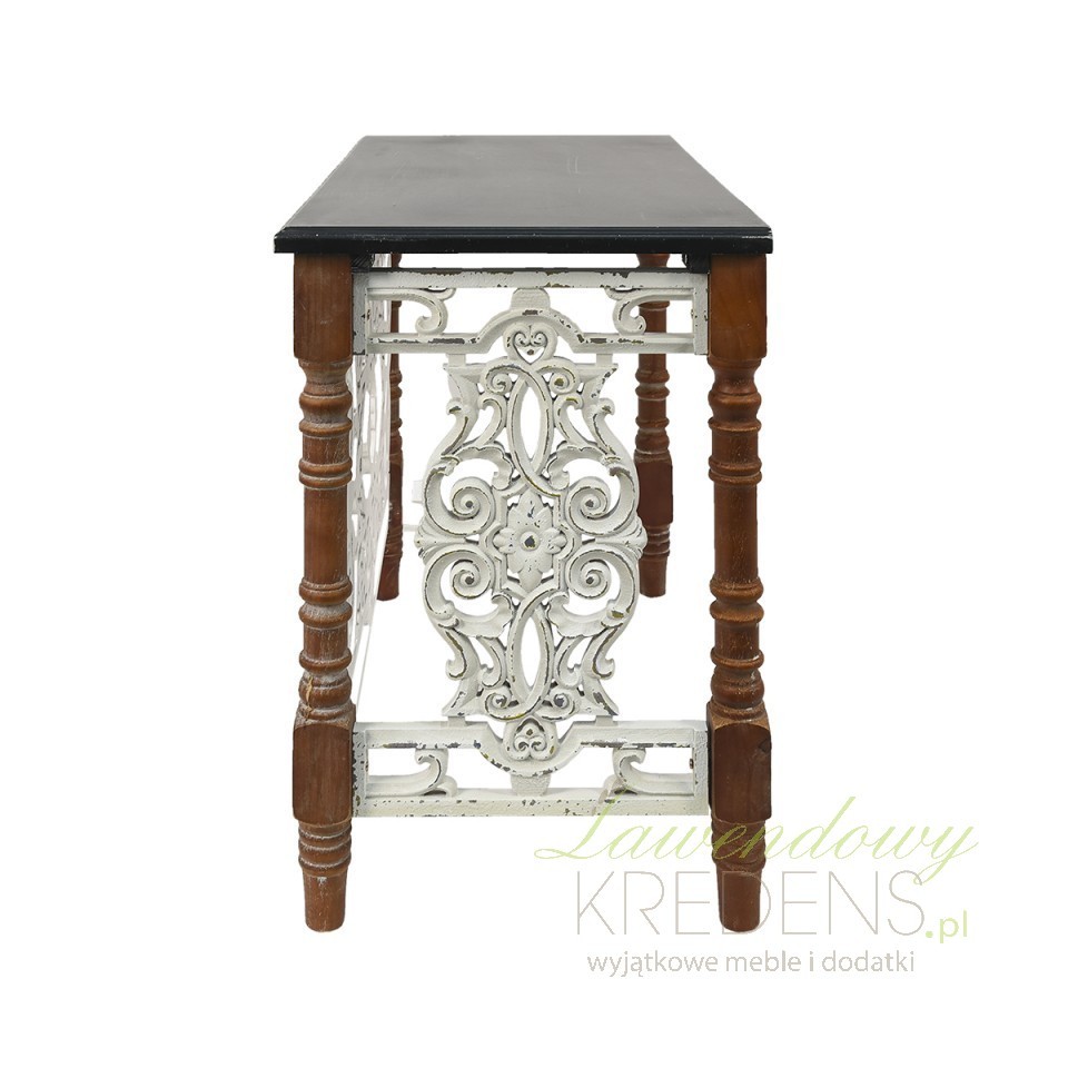 Oto fenomenalna konsola prowansalska z rzeźbieniami Clayre & Eef – jej niezrównane piękno wynika z nietuzinkowej formy i wielu zapierających dech w piersi detali.