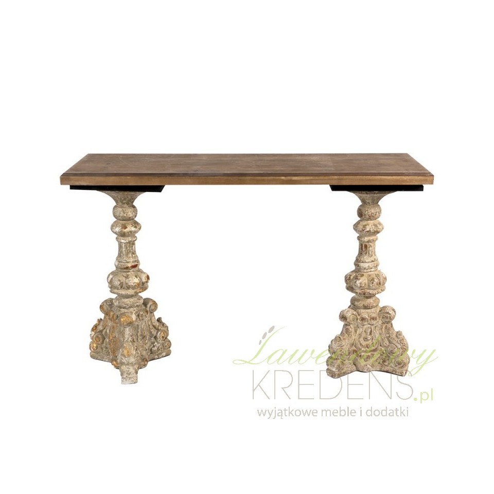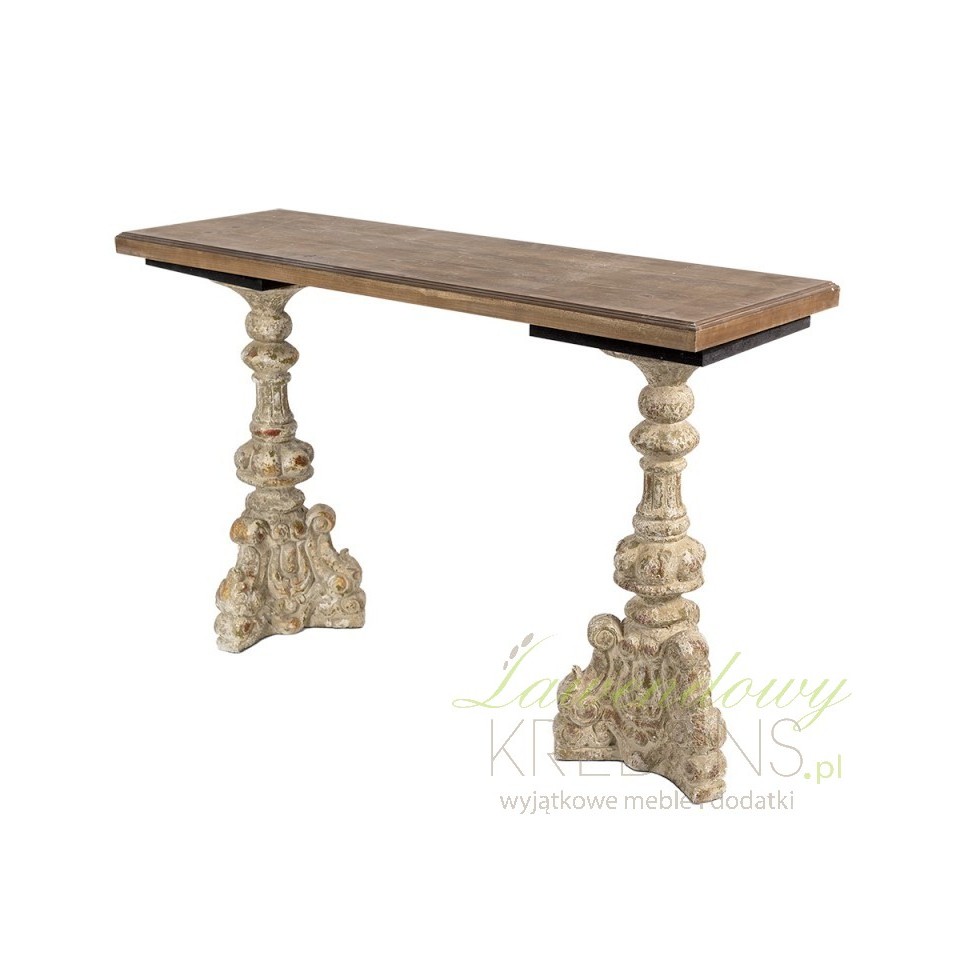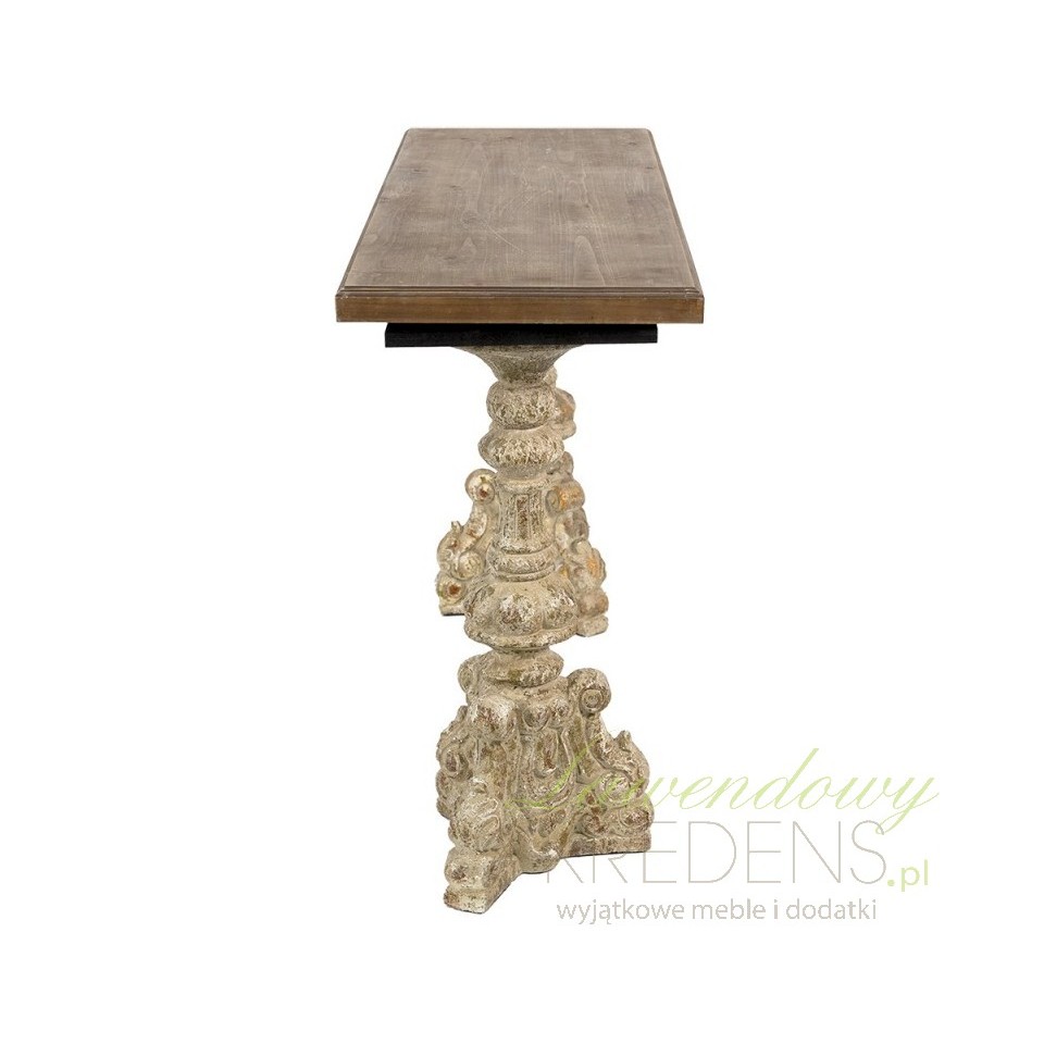 Dzięki dwóm masywnym, rzeźbionym nogom, konsola w stylu prowansalskim postarzana od Clayre & Eef to mebel, którego nie da się przeoczyć, nawet gdy stoi w najciemniejszym miejscu w Twoim domu.