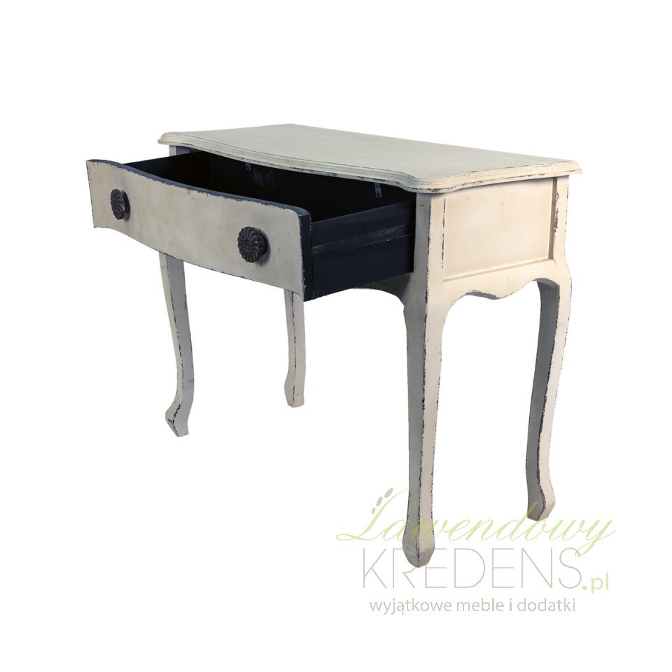 Naturalnie piękna konsola w stylu prowansalskim kremowa Clayre & Eef, która zachwyca klasyczną elegancją i mnogością celowych postarzeń.