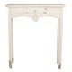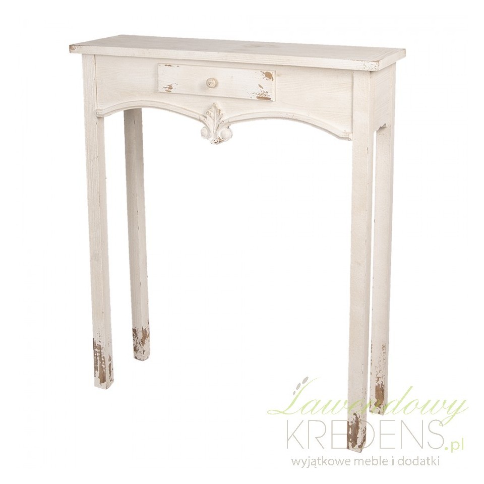 Meble shabby chic charakteryzują się lekkim, romantycznym charakterem i wyglądem, który niesie ze sobą ślady czasu. Ta konsola uosabia właśnie taką estetykę – postarzana powierzchnia i kremowy kolor nadają jej wyjątkowego wdzięku. To idealny wybór dla osób, które cenią sobie wnętrza pełne nostalgii, miękkiego światła i przyjemnej, domowej atmosfery.