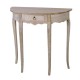Owalna konsola prowansalska na czterech nóżkach mająca jedną szufladkę.