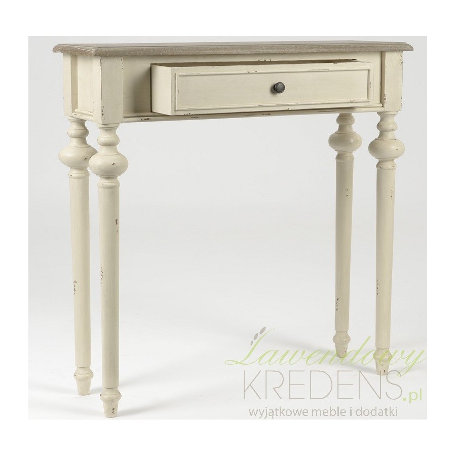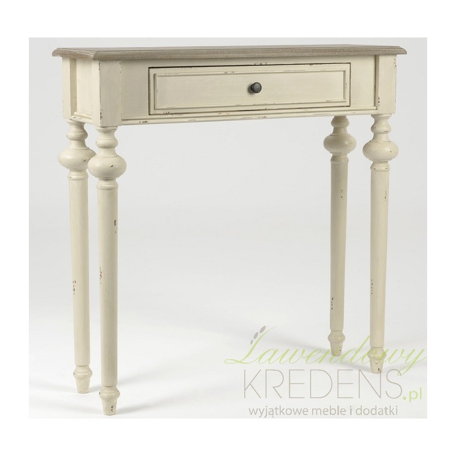 Stylowo wykończona, zgrabna konsola prowansalska w kolorze beżowym, z delikatnymi przecierkami na krawędziach!