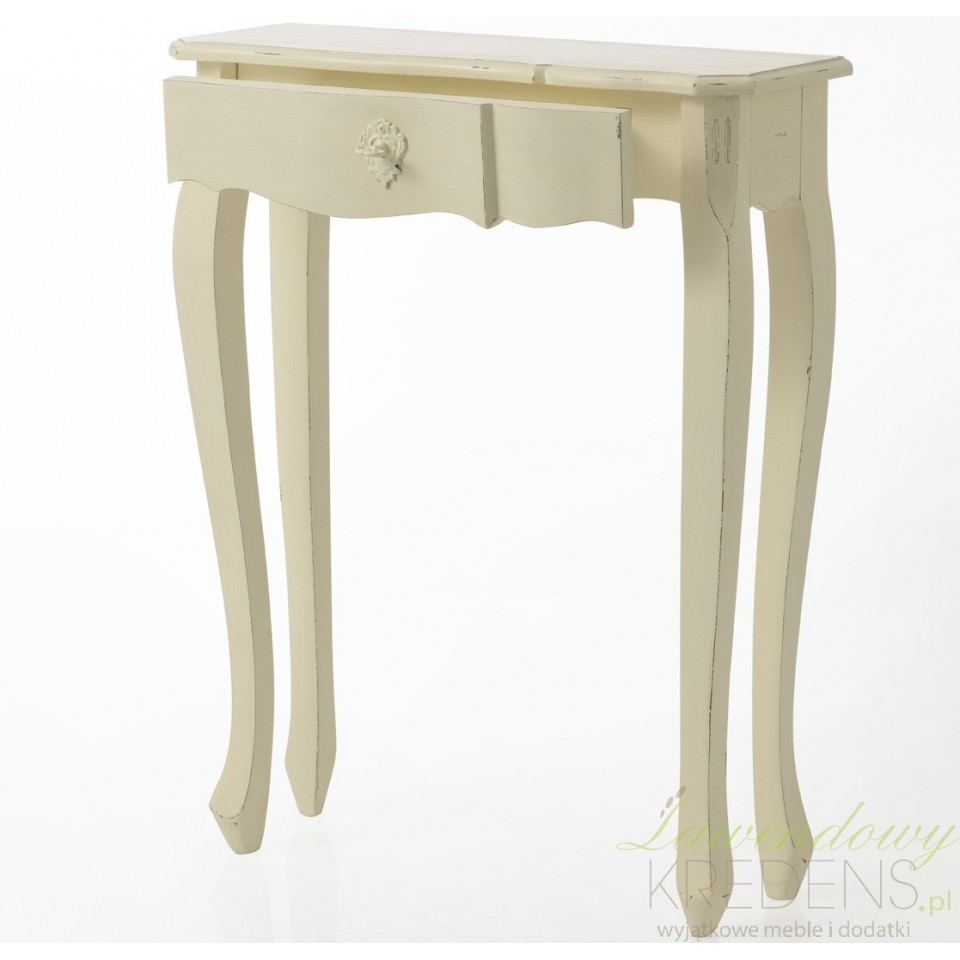Doskonale ukształtowana, pełna gracji i lekkości konsola prowansalska z szeroką szufladą! Dopełni Twoje wnętrze jako stolik pod lustro, stolik nocny czy jako element wystroju salonu! W każdym zadaniu sprawdzi się fantastycznie i ze style odmeini Twoje wnętrze!
