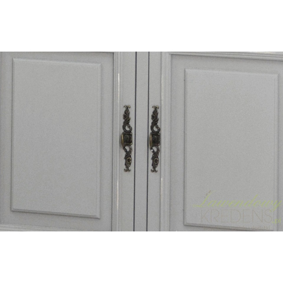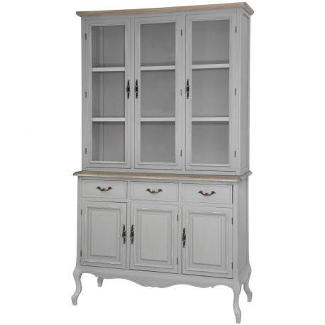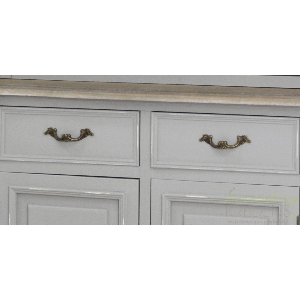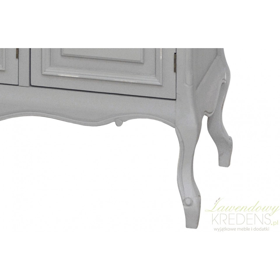 Kredens w stylu prowansalskim z kolekcji Catania ma szary kolor i blat z bielonego drewna. Niezwykle pojemny i przestrzenny kredens prowansalski doskonale nadaje się do kuchni francuskich i w stylu retro. Nogi kredensu są delikatnie zaokrąglone. W dolnej cześci mebla znajdują się szafki, a tuż nad nimi przeszklona witryna z półkami. Polecamy meble prowansalskie do dużych wnętrz.
