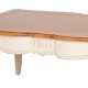 Modny i wygodny stół francuski na czterech nogach w kolorze kremowym z blatem w kolorze naturalnego drewna!