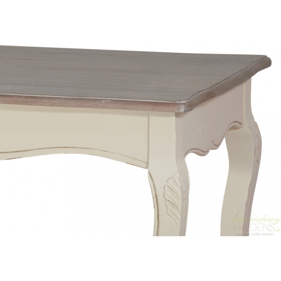 Oto stolik kawowy prowansalski Savona od Livin Hill. Tworzy go przepiękny, bielony blat osadzony na ugiętych nóżkach rzeźbionych aby uzyskać kuszący, francuski mebel.