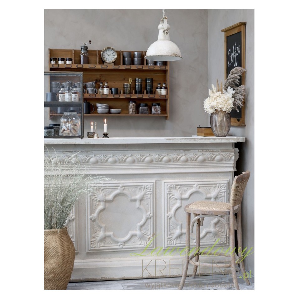Oto wyjątkowa lada sklepowa Chic Antique. Odpryski i subtelne ślady użytkowania nadają jej charakteru, sprawiając, że wygląda jak mebel z duszą, przeniesiony wprost z przeszłości. Kremowy kolor podkreśla jej delikatność i elegancję, a jednocześnie sprawia, że lada świetnie wpisuje się w różnorodne aranżacje wnętrz.