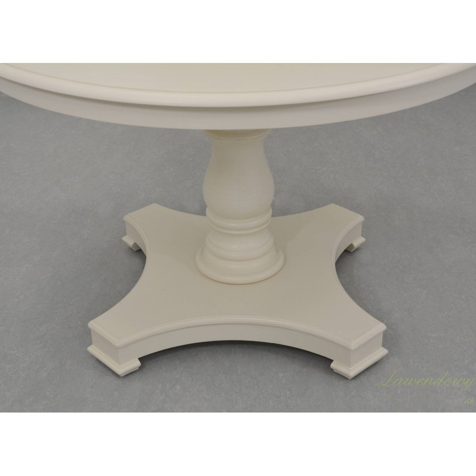 Elegancki stół w stylu prowansalskim okrągły Dijon ma średnicę 120 centymetrów, kremowy kolor, a dzięki solidnej podstawie wyróżnia się niezwykłą wytrzymałością. Charakteryzują go harmonijne linie oraz zastosowanie w konstrukcji prawdziwego drewna jesionu i brzozy. Stoły w stylu prowansalskim potęgują wrażenie dobrze uporządkowanego wnętrza, w którym da się zauważyć ład i wszechogarniający spokój. Prostokątne i okrągłe stoły prowansalskie z kolekcji Dijon to meble Livin Hill, których potrzebuje Twoja jadalnia i kuchnia!