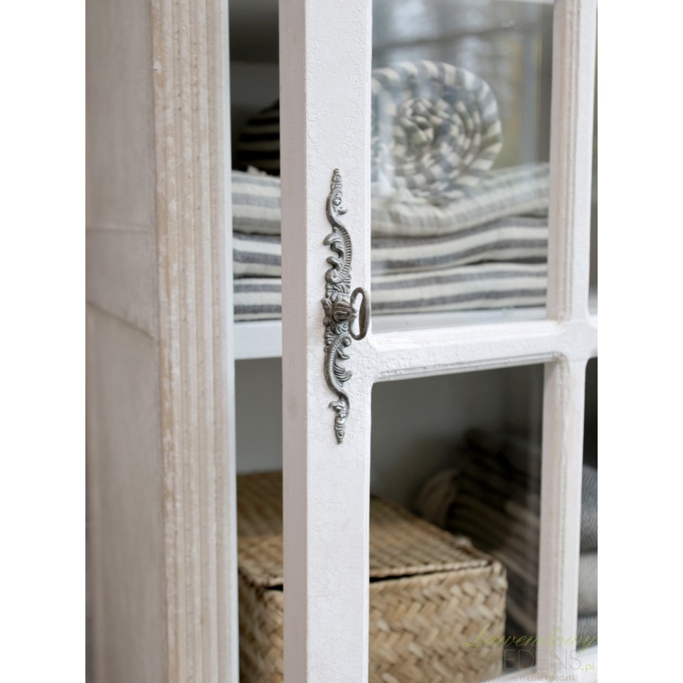 Wykonana z najwyższej jakości konstrukcji z drewna i szkła, ta witryna prowansalska Chic Antique ma prostą sylwetkę z postarzanymi listwami oraz z zaokrąglonymi nóżkami. Cztery półki ukryte za drzwiami z metalowym uchwytem dekoracyjnym, zapewniają mnóstwo miejsca na koszule, skarpetki, dżinsy, jak również na przedmioty dekoracyjne i ozdoby. Poza tym, że meble prowansalskie są piękne, nie można im odmówić funkcjonalności, która tak bardzo jest potrzebna na co dzień w każdym domu. Nie czekaj i zamów teraz!
