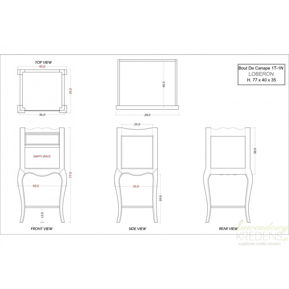 Ten stolik prowansalski Luberti z szufladką mierzy 77 cm wysokości. Jego blat ma wymiary 35 x 40 cm. Ma ładnie zaokrąglone krawędzie wokół blatu i subtelnie wygięte nóżki. Pomalowany został na beżowo-szary kolor, który nadaje mu tradycyjny wygląd w stylu francuskim. Ten stonowany kolorystycznie mebel ma również tę zaletę, że pasuje do wszystkiego! Stoliki w stylu prowansalskim możesz ustawić obok łóżka, aby umieścić na ich blacie budzik, lampkę nocną, książkę i inne rzeczy osobiste. Takie prowansalskie meble pozwalają na przechowywanie dużej ilości rzeczy bez zajmowania zbyt dużej przestrzeni.