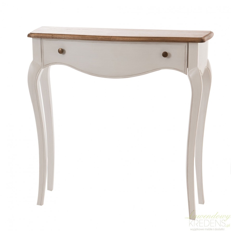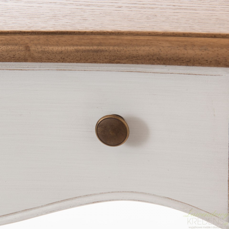 Konsola prowansalska Luberti łączy w sobie subtelny urok stylu shabby chic z angielską elegancją. Jej kremowa podstawa i brązowy blat tworzą ponadczasowe zestawienie, które odmieni przedpokój, salon czy sypialnię. To mebel, który nie tylko dekoruje, ale także dodaje wnętrzu romantycznej atmosfery i ciepła.