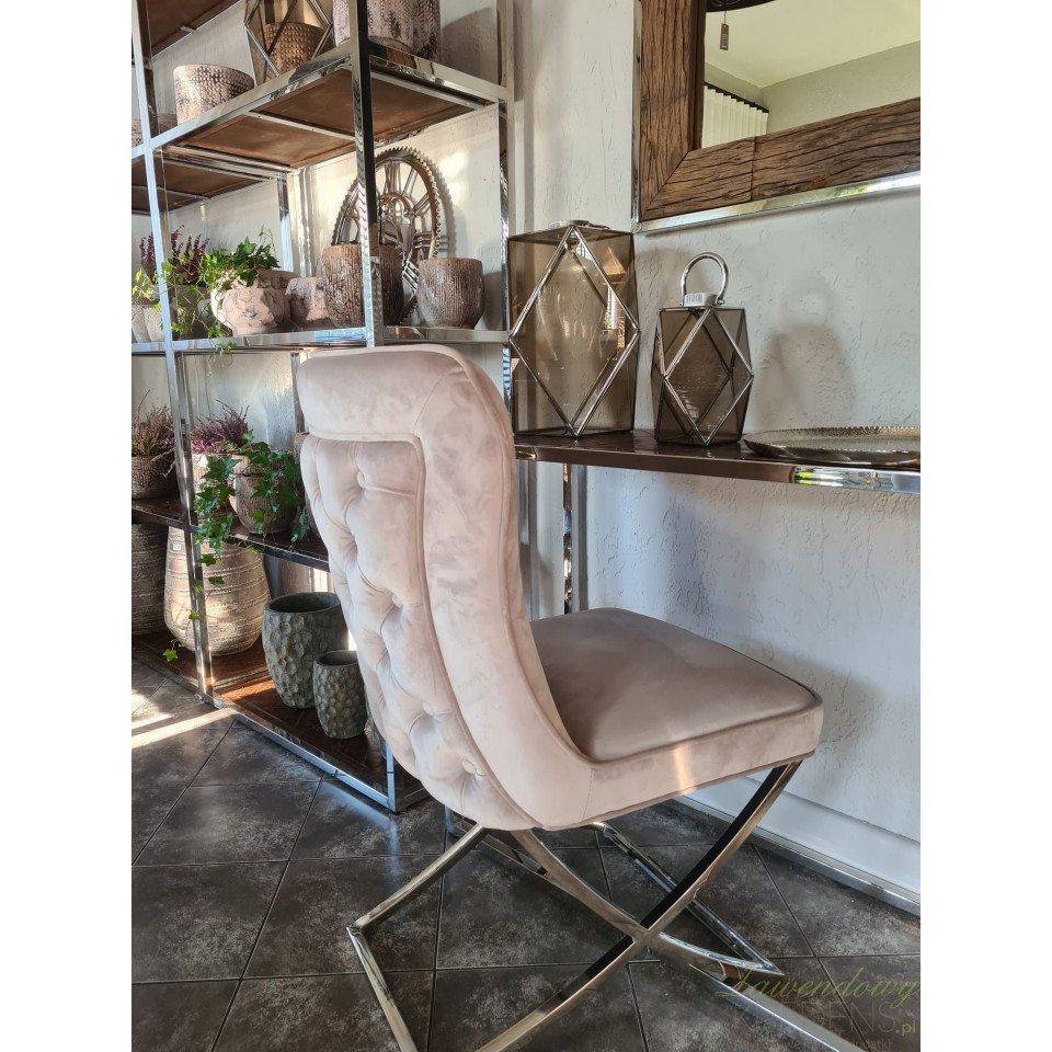 Krzesło Belldeco Glamour Nude wykonane jest z wysokiej jakości weluru w subtelnym, beżowym kolorze z metalowymi nogami.