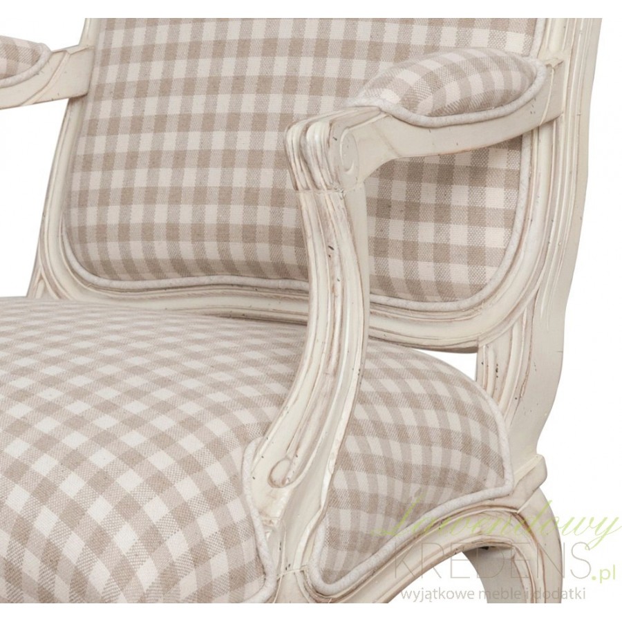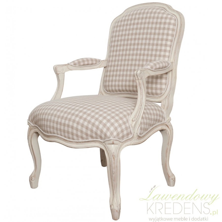 Niewyobrażalnie wygodne krzesło w stylu francuskim z szerokim siedziskiem, tapicerowane jasnym materiałem w kratę!