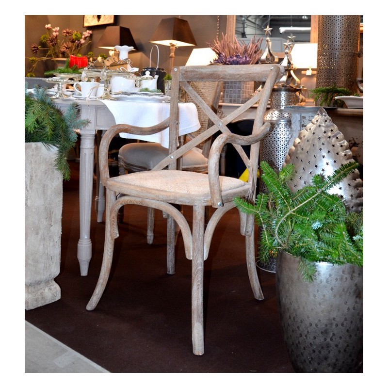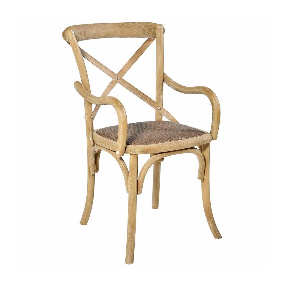 Ponadczasowe krzesło z serii Bari marki Belldeco wykonane z drewna dębowego. Drewno to jest szczotkowane i bielone dzięki czemu krzesło wygląda niezwykle ciekawie, a słoje drewna są pięknie podkreślone. Siedzisko krzesła jest wyplatane rafią. Krzesło jest bardzo wygodne dzięki drewnianym podłokietnikom.