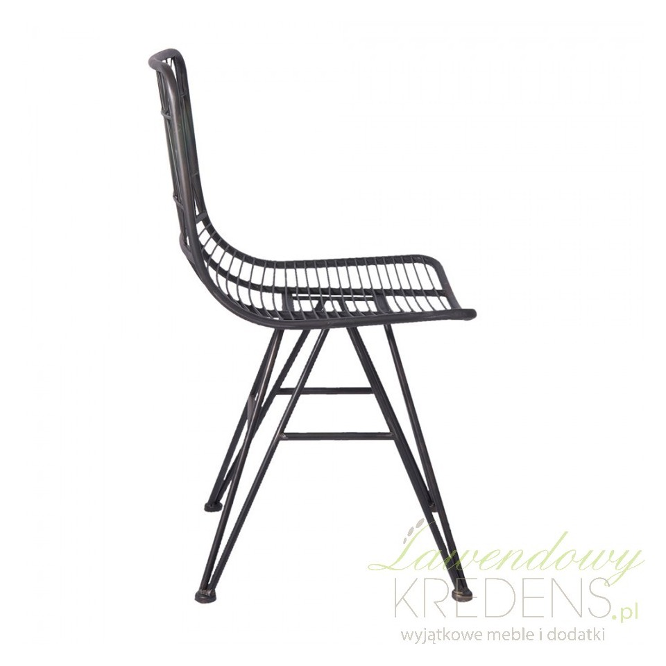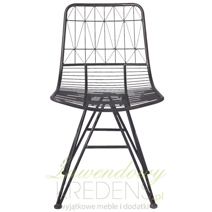 Metalowe krzesło z kolekcji mebli skandynawskich w czarnym kolorze. Oparcie oraz siedzisko krzesła zostały wykonane w ażurowej formie. Proste, rozstawione nogi i staranność wykonania oddają oryginalny styl i sprawiają, że krzesło skandynawskie to mebel, który wprowadzi do wnętrza świeży design. W Twojej kuchni również nie może go zabraknąć!