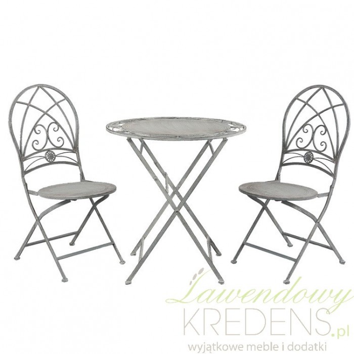 Meble prowansalskie posiadają cudowne finezyjne dekoracje w postaci wspaniałych licznych zdobień. Jednymi z nich są prześliczne meble ogrodowe firmy Clayre & Eef. Składają się z okrągłego stolika i dwóch krzeseł. Wykonane są z wysokiej klasy metalu w uniwersalnym szarym kolorze. Posiadają wyjątkowe zdobienia i finezyjne linie, dzięki którym są niepowtarzalne i jedyne w swoim rodzaju.