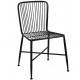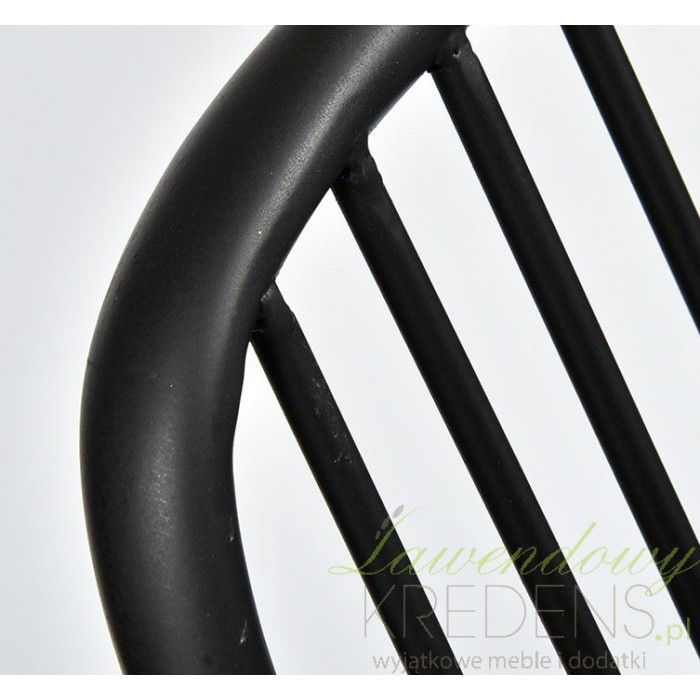 Metalowe krzesło z metalu o nieskomplikowanej budowie ma ciemny kolor, proste nogi i świetnie pasuje do industrialnych aranżacji wnętrz i ogrodów.