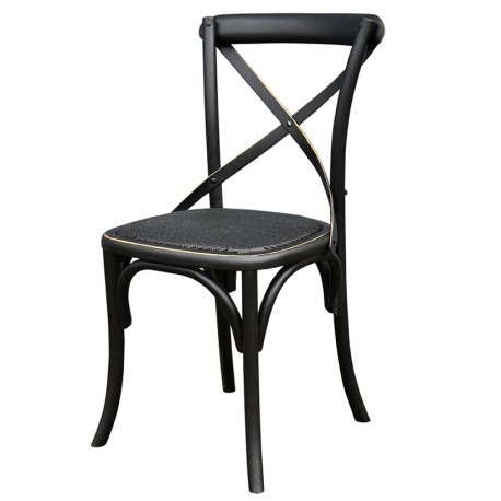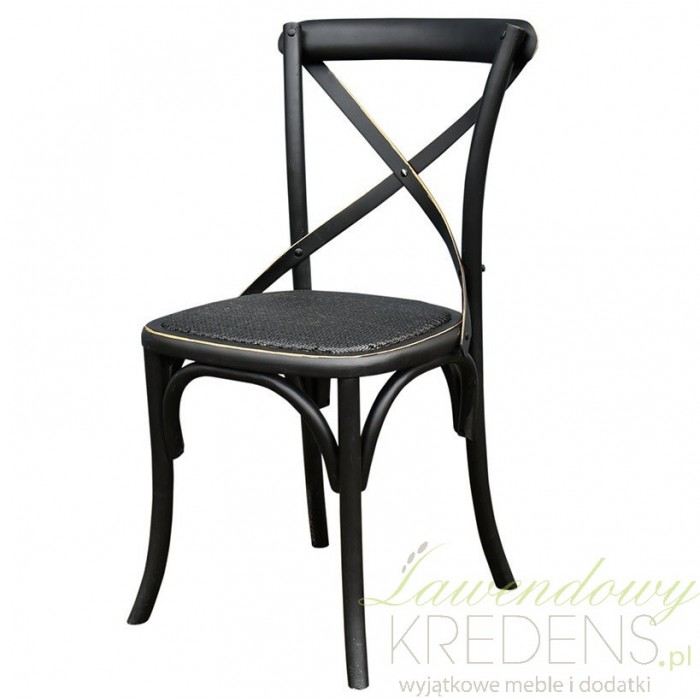 Czarne krzesło Belldeco w stylu prowansalskim z serii Bari jest wykonane z drewna brzozowego i rattanu.